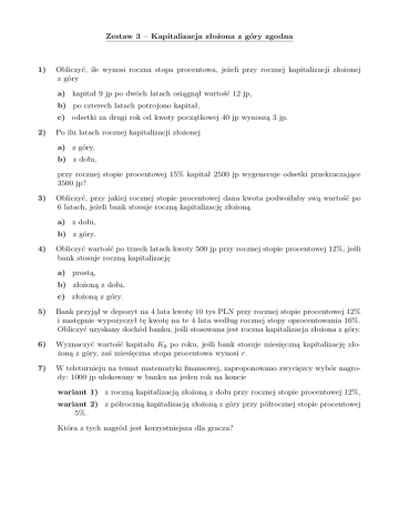Zestaw 3 – Kapitalizacja złożona z góry zgodna 1) Obliczyć