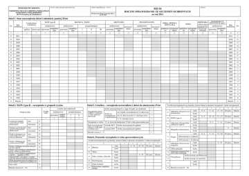 Nazwa i adres jednostki sprawozdawczej: MINISTERSTWO ZDROWIA Numer identyfikacyjny – REGON: NARODOWY INSTYTUT ZDROWIA PUBLICZNEGO PAŃSTWOWY ZAKŁAD HIGIENY 00-791 Warszawa, ul. Chocimska 24 Adresat: MZ-54 ROCZNE SPRAWOZDANIE ZE SZCZEPIEŃ OCHRONNYCH za rok 2011 Przekazać do dnia 21 stycznia 2012 r. za rok 2011 Dział 1. Stan zaszczepienia dzieci i młodzieży poniżej 20 lat WZW typu B Liczba dzieci i młodzieży Rok Lp. urodzenia ogółem podstawowe podstawowe uzupełniadziewczęta pierwotne uzupełniapierwotne jące jące 2 3 4 HAEMOPHILUS RÓŻYCZKA INFLUENZAE typu b (dziewczęta) Rok podstawowe podstawowe podstawowe urodzenia przypomiprzypomipodstawowe uzupełniauzupełniauzupełnianające nające podstawoprzypomipodstawoprzypomilub przypopierwotne pierwotne jące jące jące we nające we nające minające pierwotne BŁONICA, TĘŻEC 5 6 KRZTUSIEC przypominające 7 I II III 8 9 10 1 24 0 2011 01 02 2010 2010 02 03 2009 2009 03 04 2008 2008 04 05 2007 2007 05 06 2006 2006 06 07 2005 2005 07 08 2004 2004 08 09 2003 2003 09 10 2002 2002 10 11 2001 2001 11 12 2000 2000 12 13 1999 1999 13 14 1998 1998 14 15 1997 1997 15 16 1996 1996 16 17 1995 1995 17 18 1994 1994 18 19 1993 1993 19 20 1992 1992 20 21 Razem Razem 21 0 1 stan 01 wykonanie 02 Studenci uczelni kształ- stan cących na kierunkach medycznych wykonanie 03 Uczniowie średnich i policealnych szkół medycznych 04 Osoby wykonujące zawody medyczne, narażone na zakażenie stan 05 wykonanie 06 Osoby z bliskiego otoczenia nosicieli HBV stan 07 wykonanie Osoby z bliskiego otoczenia chorych na wzw typu B Osoby z przewlekłym uszkodzeniem nerek, zwłaszcza dializowane Osoby z przewlekłym uszkodzeniem wątroby ... (zgodnie z PSO) Zakażeni HIV oraz dzieci z wrodzonym lub nabytym defektem odporności Osoby przygotowywane do zabiegów wykonywanych w krążeniu pozaustrojowym 08 09 2 3 przypominające I II 17 4 5 2 Szczepienia w wieku > 12. m. życia (do ukończenia 15 lat) w roku sprawozdawczym 5 Stan zaszczepienia dzieci w roku sprawozdawczym 19 20 0 4 liczba zaszczepionych ogółem 6 rocznik 2010 liczba zaszczepionych ogółem 7 Razem (wiersze 1 - 7) 07 Zakażenia Streptococcus pneumoniae 08 WZW typu A 09 Zakażenia Haemophilus influenzae typu b 10 Biegunka rotawirusowa 11 Grypa 0 1 wiek Błonica Tężec 03 Odra, świnka, różyczka 13 04 Dur brzuszny liczba Inne osoby 14 05 liczba Razem (wiersze 01 - 14) 15 06 Ospa wietrzna Kleszczowe zapalenie mózgu 2 3 4 5 0 - 19 20 - 29 30 i pow. Razem 12 13 liczba 14 liczba 15 wiek liczba liczba 0 - 19 20 i pow. wiek Razem 23 16 17 wiek 2 3 4 5 5 - 14 15 - 19 20 i pow. Razem 0-9 10 - 14 15 - 19 20 i pow. Razem 0-4 5 - 14 15 i pow. Razem 0 Razem 15 - 64 65 i pow. Razem 0 - 19 20 i pow. Razem wiek liczba wiek liczba 0-4 5 - 14 liczba zaszczep. w I. półroczu liczba zaszczep. w II .półroczu Zakażenia Neisseria meningitidis Żółta gorączka Zakażenia wirusem brodawczaka ludzkiego Wścieklizna wiek liczba liczba liczba liczba zaszczep. profilaktycznie liczba zaszczep. po narażeniu wiek 18 19 1 0-4 liczba wiek Liczba zaszczepionych wg choroby, przeciw której wykonano szczepienie i wieku szczepionych 22 liczba 8 Dział 4. Pozostałe szczepienia w roku sprawozdawczym 21 Liczba zaszczepionych wg choroby, przeciw której wykonano szczepienie i wieku szczepionych 3 rocznik 2011 11 18 1 po 24 godz. od urodzenia do 14. dnia życia liczba zaszczepionych po 14. dniu życia do 11. miesiąca życia z opóźnieniem w 12. miesiącu życia 02 12 16 liczba zaszczepionych w ciągu 24 godz. po urodzeniu Szczepienia noworodków wykonane w roku sprawozdawczym 01 10 15 Dział 3. Gruźlica – szczepienia noworodków i dzieci do ukończenia 15 lat Liczba zaszczepionych podstawowe pierwotne uzupełniające 14 Lp. 2011 Grupa ryzyka 13 ODRA 0 Liczba osób 12 ODRA, ŚWINKA, RÓŻYCZKA 01 Dział 2. WZW typu B – szczepienia w grupach ryzyka 11 POLIOMYELITIS liczba Razem (wiersze 01 - 18) Uwagi przekazującego dane: .............................................................................................................................. .............................................................................................................................. .............................................................................................................................. .............................................................................................................................. .............................................................................................................................. .............................................................................................................................. .............................................................................................................................. .............................................................................................................................. Instrukcja do sprawozdania Sprawozdanie jednostkowe sporządzają podmioty wykonujące działalność leczniczą udzielające ambulatoryjnych i stacjonarnych świadczeń zdrowotnych, biorące udział w szczepieniach ochronnych (obowiązkowych, zalecanych lub innych) lub przechowujące karty uodpornienia. Sprawozdanie sporządzane jest według stanu dokumentacji podstawowej w dniu 31 grudnia roku sprawozdawczego. Dział 1. Stan zaszczepienia dzieci i młodzieży poniżej 20 lat W sprawozdaniu jednostkowym podstawę wypełnienia tego działu stanowią wyłącznie karty uodpornienia. Wiersze 01-20 są przeznaczone do wykazania stanu zaszczepienia kolejnych roczników dzieci i młodzieży. Wiersz 21 jest przeznaczony na sumy liczb z poszczególnych rubryk - pełniące w sprawozdaniu funkcję kontrolną. Rubryki 2-3: Należy podać liczbę osób, których karty uodpornienia znajdują się u świadczeniodawcy sporządzającego sprawozdanie. Uwzględniać należy wszystkie karty - także osób z przeciwwskazaniam