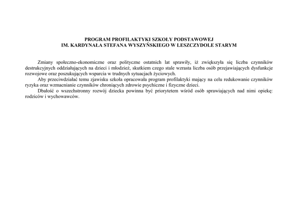 PROGRAM PROFILAKTYKI - Szkoła Podstawowa im. Kardynała