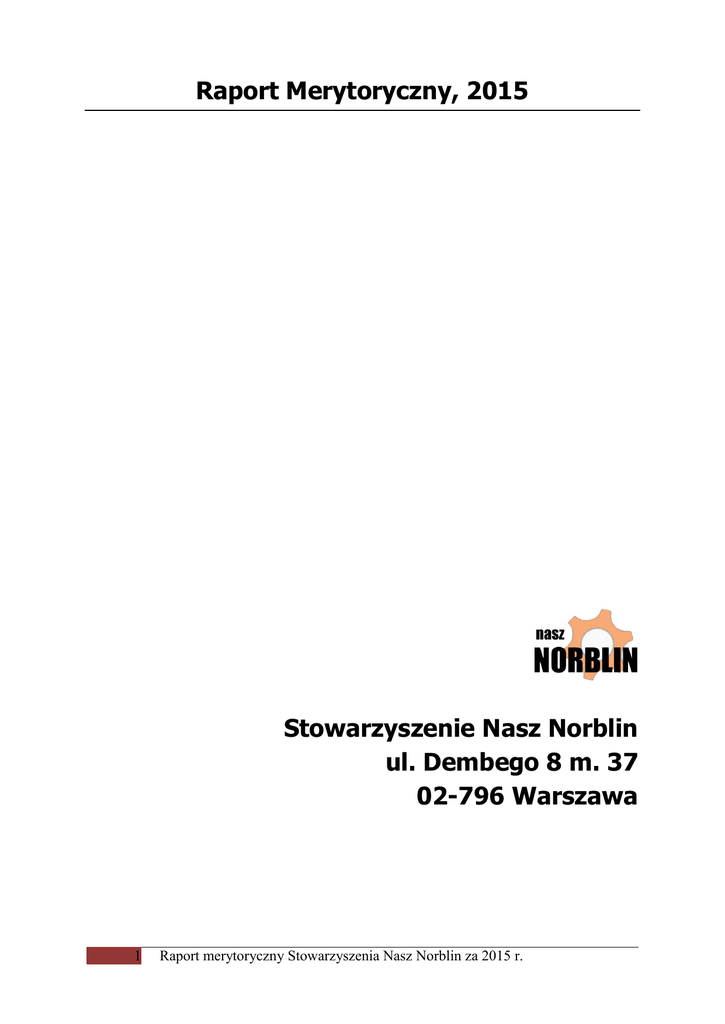 Raport Merytoryczny, 2015 Stowarzyszenie Nasz Norblin ul