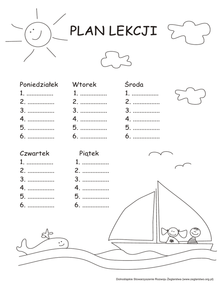 Plan lekcji do pokolorowania