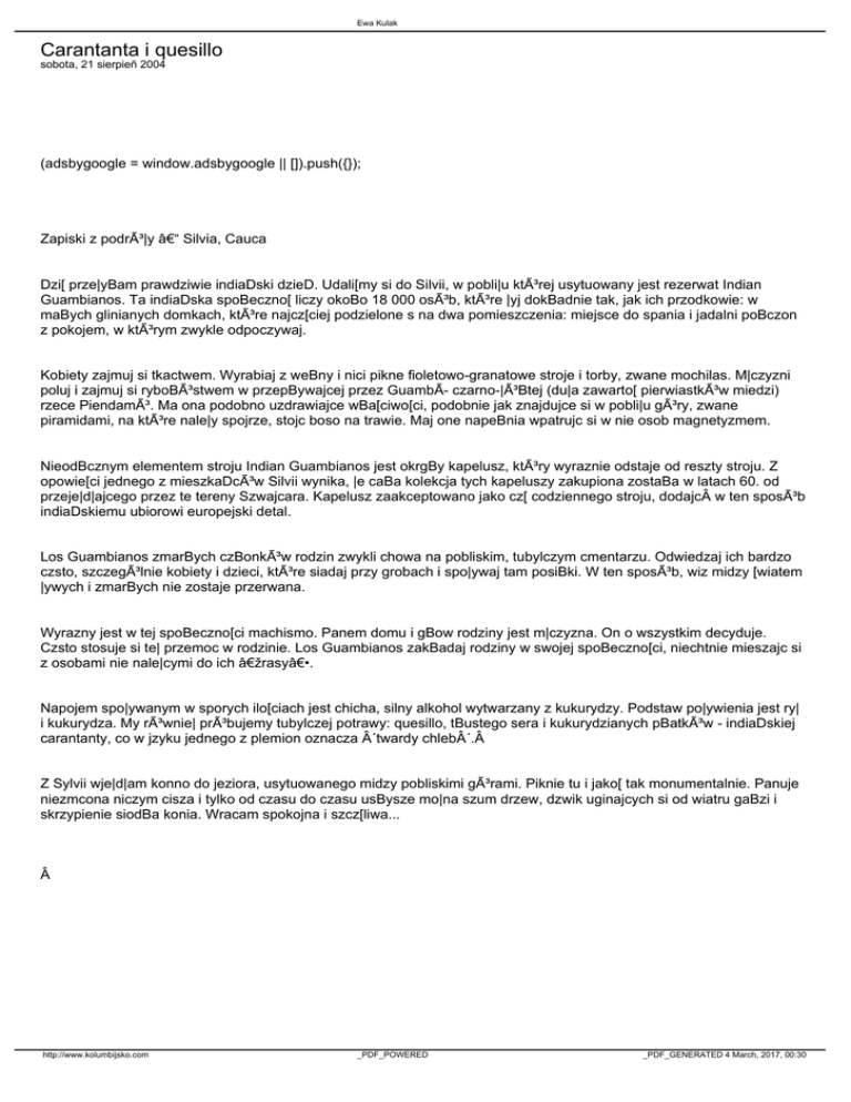 Zapiski z podró|y – Silvia, Cauca