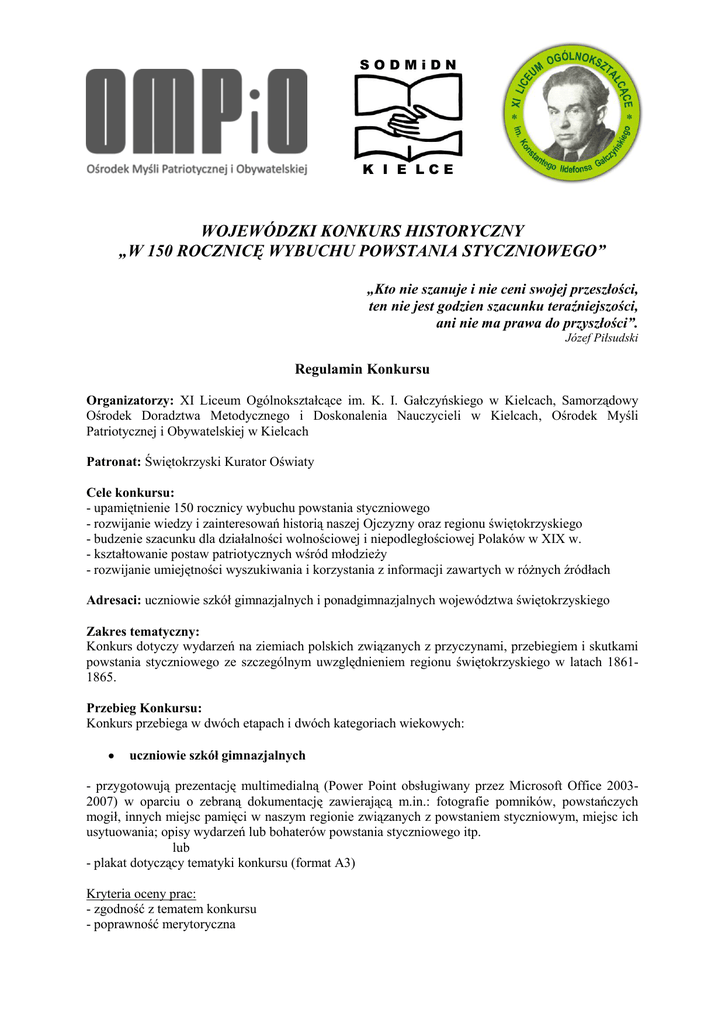 WOJEWÓDZKI KONKURS HISTORYCZNY „W 150 ROCZNICĘ