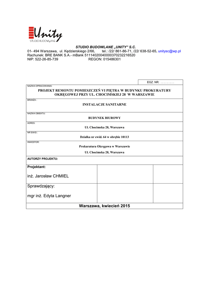 b. sanitarna projekt - Prokuratura Okręgowa w Warszawie