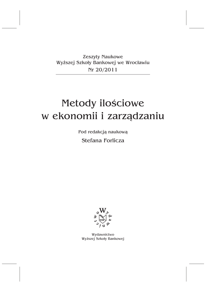 1 Zeszyty Naukowe Wyższej Szkoły Bankowej we Wrocławiu Nr 20/2011 Metody ilościowe w ekonomii i zarządzaniu Pod redakcją naukową Stefana Forlicza Wydawnictwo Wyższej Szkoły Bankowej 2 Recenzenci prof. dr hab. Juliusz Siedlecki dr hab. Adam Czerwiński prof. nadzw. UO dr hab. Jerzy Marzec prof. nadzw. UEK dr hab. Zofia Wilimowska prof. nadzw. PWr Rada Programowa prof. dr hab. Maria Cieślak, prof. dr hab. Stefan Forlicz, prof. dr hab. Marian Noga, prof. dr hab. Piotr Migoń, prof. dr hab. Danuta Misińska , prof. dr hab. Wanda Ronka-Chmielowiec, dr hab. Andrzej Bujak prof. nadzw. WSB Wrocław, dr hab. Barbara Iwankiewicz-Rak prof. nadzw. WSB Wrocław, dr hab. Andrzej Kaleta prof. nadzw. WSB Wrocław, dr hab. Andrzej Śmieja prof. nadzw. WSB Wrocław Redaktor naczelny „Zeszytów Naukowych” dr hab. Kazimiera Wilk prof. nadzw. WSB Wrocław Redaktor naukowy prof. dr hab. Stefan Forlicz Sekretarz naukowy dr Adam Hetmańczuk Redakcja i korekta Irena Gawron Projekt okładki Jan Ślusarski Kopiowanie i przetwarzanie w jakiejkolwiek formie wymaga pisemnej zgody Wydawcy © Copyright by Wydawnictwo Wyższej Szkoły Bankowej w Poznaniu, 2011 ISSN 1643-7772 WYDAWNICTWO WYŻSZEJ SZKOŁY BANKOWEJ al. Niepodległości 2, 61-874 Poznań tel. 61 655 33 99, tel./fax 61 655 33 97 e-mail: [email protected], [email protected] www.wydawnictwo.wsb.poznan.pl Skład i łamanie: Włodzimierz Ludwiczak, Poznań Druk i oprawa: ESUS Druk cyfrowy, Poznań 3 Spis treści Przedmowa (Stefan Forlicz) .................................................................................... 7 Elżbieta Babula Modelowanie stochastyczne w teorii wyboru w warunkach ryzyka ......................... 9 Stanisława Bartosiewicz Wybór wzorcowych proporcji dla pomiaru zrównoważonego wzrostu społeczno-gospodarczego w Polsce ........................................................................................... 31 Anna Blajer-Gołębiewska Wykorzystanie stron internetowych jako źródła informacji dla inwestorów ............. 45 Anna Błaczkowska Zmiany w strukturze wydatków polskich gospodarstw domowych na tle krajów UE w latach 2001-2008 .................................................................................................... 63 Marcin Błażejowski Symulacyjna ocena testu Dickeya na stacjonarność procesów o wysokiej częstotliwości obserwowania ..................................................................................... 81 Małgorzata Borzyszkowska Test HEGY dla wybranych zmiennych makroekonomicznych gospodarki Polski w latach 1996-2009 .................................................................................................... 89 Ewa Czapla Długookresowe powiązania stóp procentowych w strefie euro, USA i Polsce .......... 105 Mirosław Dytczak, Grzegorz Ginda Efekt synergii na przykładzie fuzji podmiotów gospodarczych z niemierzalnymi zasobami .................................................................................................................... 119 Mirosław Dytczak, Grzegorz Ginda, Tomasz Wojtkiewicz Identyfikacja globalnie optymalnego harmonogramu realizacji złożonych inwestycji ................................................................................................................... 137 Maria Forlicz Wpływ inflacji na postrzeganie wartości pieniądza w czasie .................................... 157 4 Spis treści Magdalena Frasyniuk-Pietrzyk Dominacja stochastyczna w ocenie efektywności OFE ............................................. 165 Alicja Gębczyńska, Andrzej Bujak Wykorzystanie modelu dojrzałości procesowej w doskonaleniu systemów zarządzania jakością ................................................................................................... 177 Anna Jędrzychowska Stopa zwrotu funduszy emerytalnych jako czynnik wpływający na decyzje o wyborze OFE .......................................................................................................... 189 Zdzisław Kes, Łukasz Kuźmiński Wykorzystanie kart kontrolnych w budżetowaniu ..................................................... 201 Patrycja Kowalczyk-Rólczyńska Analiza polskiego rynku kredytów mieszkaniowych ................................................ 221 Paweł Kufel Porównanie jakości nieliniowych modeli ekonometrycznych na podstawie testów trafności prognoz ....................................................................................................... 233 Tadeusz Kufel Ocena efektywności procedury Congruent Specyfication dla małych prób .............. 243 Paweł Kuśmierczyk Eksperymentalne badanie poziomu cen i efektywności wybranych mechanizmów aukcyjnych, zastosowanych w przypadku przetargów jednokryterialnych ............... 255 Wiesław Łuczyński Fraktalna natura procesów gospodarczych ................................................................ 271 Łukasz Mach Budowa praktycznego modelu regresji opisującego zależności występujące na rynku nieruchomości mieszkaniowych ................................................................. 291 Katarzyna Maruszewska Zastosowanie klasycznej i wielowymiarowej analizy korespondencji w badaniu uwarunkowań emigracji z Polski ............................................................................... 303 Aldona Migała-Warchoł Ocena przestrzennego zróżnicowania poziomu i jakości życia mieszkańców województwa podkarpackiego ................................................................................... 325 Piotr Peternek, Marek Kośny Kilka uwag o testowaniu istotności współczynnika korelacji ................................... 341 Spis treści 5 Zygmunt Przybycin Zarządzanie ryzykiem projektów inwestycyjnych ..................................................... 351 Jerzy Rembeza, Aneta Kłodzińska Modelowanie struktury terminowej stóp procentowych ............................................ 363 Tomasz Rólczyński Próba identyfikacji ryzyka związa
