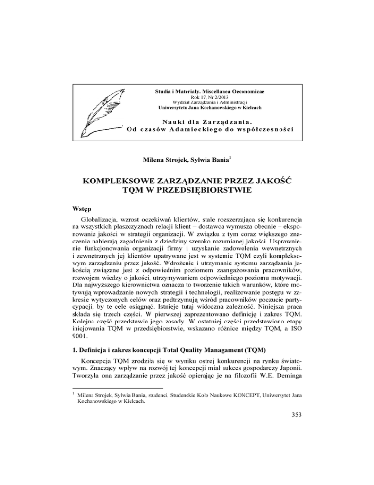 KOMPLEKSOWE ZARZĄDZANIE PRZEZ JAKOŚĆ TQM W