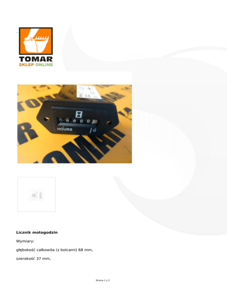 Licznik motogodzin Wymiary: głębokość całkowita (z bolcami) 68 mm, szerokość 37 mm, Strona 1 z 2 wysokość 24 mm, rozstaw śrub 45 mm Wysokiej jakości zamiennik Zastosowanie: Licznik jest uniwersalny Cena netto: 120,00 zł Cena brutto: 147,60 zł KONTAKT: Części, serwis: 691-435-888 , 665-997-555 Sprzedaż maszyn budowlanych: 693-232-579 Biuro: 691-635-777 Wystawiamy faktury VAT W sprzedaży posiadamy bogaty asortyment części do maszyn JCB. Filtry, oleje, części zamienne. SERWIS MOBILNY Strona 2 z 2