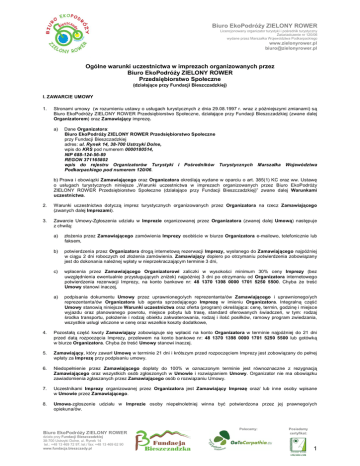 Biuro EkoPodróży ZIELONY ROWER 1 Ogólne warunki