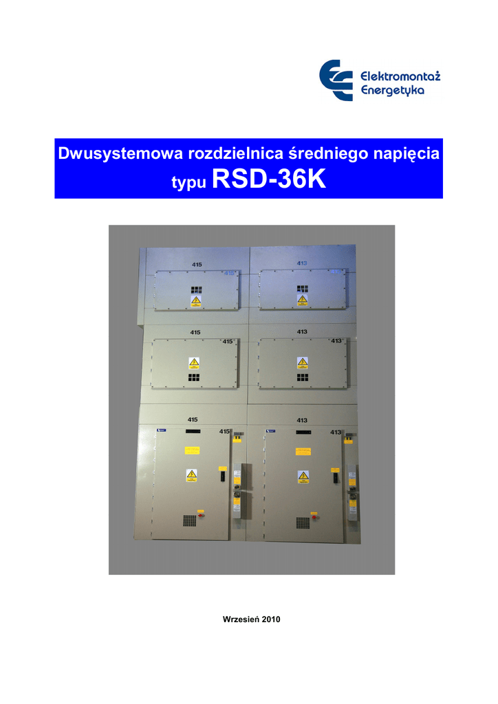 Dwusystemowa rozdzielnica średniego napięcia typu RSD-36K Wrzesień 2010 Elektromontaż Energetyka Sp. z o.o. Rozdzielnica typu RSD-36K WSTĘP Rozdzielnice typu RSD-36K produkowana przez Elektromontaż Energetyka Sp. z o.o. są nowoczesnymi urządzeniami o wysokich parametrach technicznych spełniających wymagania najnowszych obowiązujących norm. ZASTOSOWANIE Rozdzielnice typu RSD-36K przeznaczona jest do przyjęcia i rozdziału energii elektrycznej trójfazowego przemiennego o częstotliwości 50Hz przy znamionowym napięciu do 36kV. Rozdzielnice mogą być stosowane jako rozdzielnice główne w Zakładach Chemicznych, Petrochemii, w Kopalniach Węgla Brunatnego, w Elektrowniach. CHARAKTERYSTYKA Rozdzielnica typu RSD-36K jest dwusystemową, wnętrzową rozdzielnicą przedziałową w osłonie metalowej. Składa się z trzech poziomów: • pierwszy górny wyłącznikowy • drugi środkowy odłącznikowy • trzeci dolny przyłączowy Pola rozdzielnicy RSD-36K posiadają następujące właściwości: • wysoką niezawodność pracy • łukochronność osiągniętą przez odpowiednią wzmocnioną konstrukcję pól, drzwi, osłon oraz klapy wydmuchowe, otwierające się pod wpływem ciśnienia gazów powstałych podczas palenia się gazów. • możliwość realizacji układów rozdzielnic dostosowanych do różnorodnych wymagań technicznych • zastosowanie nowoczesnej aparatury łączeniowej, • prostą obsługę i konserwację, • wysoką odporność na korozję (konstrukcja rozdzielnicy wykonana jest z blachy stalowej, pokrytej „alucynkiem ’’ lub cynkowanej. Zewnętrzne osłony, drzwi malowane lakierem proszkowym ) Wysokie rozdzielnicy przez: bezpieczeństwo RSD-36K osiągnięte obsługi zostało • wykonanie łukoochronne –odpowiednio wzmocnione drzwi, osłony i inne elementy konstrukcyjne oraz dach z klapami wydmuchowymi zapobiegają wydostaniu się gazów powstałych podczas palenia się łuku w stronę korytarza obsługi – tylko kondygnacja górna, • zastosowanie układów kontrolnych , sygnalizacyjnych , mechanicznych wskaźników położenia i wzierników , • zastosowanie izolatorów reaktancyjnych lub rezystancyjnych współpracujących ze wskaźnikami obecności napięcia i z blokadami elektromagnetycznymi • blokady mechaniczne i elektromechaniczne zapobiegające błędnym manipulacjom łączeniowym, BLOKADY Pola rozdzielnicy wyposażone w blokady ruchowe: • Blokada uniemożliwiająca otwarcie i zamknięcie odłącznika systemowego oraz odłącznika liniowego przy zamkniętym wyłączniku, • Blokada uniemożliwiająca zamknięcie dwóch odłączników systemowych w polu jednocześnie, jeśli wyłącznik w polu sprzęgła poprzecznego jest otwarty, • Blokada otwarcia wyłącznika sprzęgła przy przechodzeniu w polu z systemu na system • Blokada elektryczna uniemożliwiająca zamknięcie uziemnika przy obecności napięcia na kablu i przy zamkniętym odłączniku liniowym • Blokada elektryczna (napęd ręczny korbą) odłączników systemowych i odłącznika liniowego przy zamkniętym wyłączniku i zamkniętym jednym z odłączników systemowych w polu, • Blokada elektryczna otwarcia odłącznika liniowego (napęd ręczny korbą) przy zamkniętym wyłączniku w polu, • Blokada elektryczna uniemożliwiająca otwarcie drzwi w polu do przedziału wyłącznikowego przy zamkniętym wyłączniku, zamkniętym odłączniku systemowym oraz odłączniku liniowym • Blokada elektryczna uniemożliwiająca otwarcie drzwi celki z odłącznikiem liniowym przy zamkniętym wyłączniku w polu i otwartym uziemniku • Blokada elektryczna uniemożliwiająca otwarcie drzwi w celce kablowej przy zamkniętym wyłączniku i otwartym uziemniku, ZGODNOŚĆ Z NORMAMI Rozdzielnice typu RSD-36 wymagania poniższych norm: spełniają • PN-EN 62271-200: 2007 „Wysokonapięciowa aparatura rozdzielcza i sterownicza. Część 200: Rozdzielnice prądu przemiennego w osłonach metalowych na napięcia powyżej 1kV do 52kV włącznie”; • PN-EN 62271-1: 2007 „Wysokonapięciowa aparatura rozdzielcza i sterownicza. Część 1: Postanowienia wspólne” CERTYFIKAT • CERTYFIKAT wydany przez Instytut Elektrotechniki Warszawa, potwierdzający dane znamionowe, o nr.: 0690/NRB/09 DANE TECHNICZNE Napięcie znamionowe: Napięcie robocze: 36 kV do 30 kV Poziom znamionowy izolacji : - napięcie probiercze udarowe - napięcie probiercze 1min. 50Hz 170 kV 70 kV Częstotliwość znamionowa 50 Hz Znamionowy prąd ciągły szyn zbiorczych do 3150 A Znamionowy prąd ciągły pól : do 3150 A Znamionowy prąd szczytowy : do 80 kA Znamionowy prąd 1- sekundowy : do 31,5 kA Odporność łukowa, wg PN-EN 60298:2000: 31,5 kA/1s Klasyfikacja IAC AFLR Stopień ochrony IP 4X Gabaryty (bez osłon zewnętrznych): Gabaryty kondygnacja górna: - szerokość [mm] - głębokość [mm] - wysokość [mm] Gabaryty kondygnacja środkowa: - szerokość [mm] - głębokość [mm] - wysokość [mm] Gabaryty kondygnacja dolna: - szerokość [mm] - głębokość [mm] - wysokość [mm] 1500,2000 2800 5050 1500,2000 2200 2800,2850 1500 2200 2300 Elektromontaż Energetyka Sp. z o.o. Rozdzielnica typu RSD-36K BUDOWA POLA ROZDZIELCZEGO RSD-36K Pola rozdzielcze maja konstrukcję blaszaną samonośną. Do konstrukcji tej przykręcone są osłony, Elementy mocujące aparaty elektryczne, itp. Wszystkie elementy konstrukcji wykonane są z blachy stalowej z "I" pokryciem galwanicznym („alucynk” lub cynk). Drzwi oraz osłony boczne i tylne zabezpieczone są przed wpływem czynników zewnętrznych lakierem proszkowym. "II" "V" Rys. 1. Budowa pola kondygnacji górnej rozdzielnicy typu RSD-36K. "I" - przedział szyn zbiorczych systemu I "II" - przedział szyn zbiorczych systemu II "III" - przedział odłącznika systemu I "IV" - przedział odłącznika systemu II "V" - wewnętrzny kanał dekompresyjny "VI" - przedział wyłącznikowy i przyłącza kablowego "VII" - przedział niskiego napięcia "IV" "III" "VII" "VI