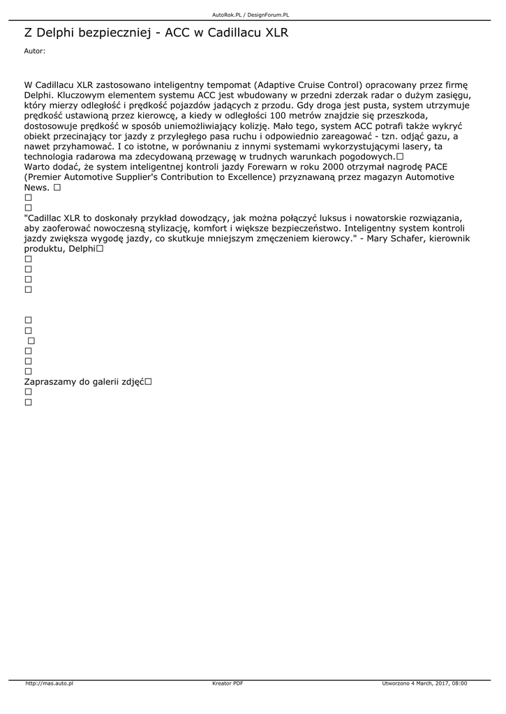 Z Delphi bezpieczniej - ACC w Cadillacu XLR