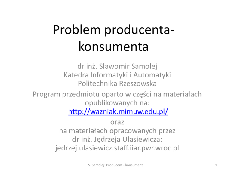 • Problem producentów i konsumentów jest abstrakcją wielu