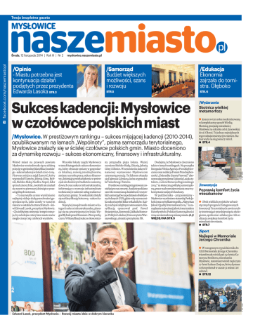 Twoja bezpłatna gazeta MYSŁOWICE /Opinie - Miastu potrzebna jest kontynuacja działań podjętych przez prezydenta Edwarda Lasoka STR.3 /Samorząd Budżet większych możliwości, szans i rozwoju /Edukacja Ekonomia zajrzała do tornistra. Głęboko STR.5 STR. 6 /Wydarzenia Sukceskadencji:Mysłowice wczołówcepolskichmiast Skotnica wielkiej metamorfozy a Jeszczewtymrokumodernizowaną wkompleksowysposóbWielką Skotnicąprzejadąmieszkańcy Mysłowicnaodcinkuodul.Janowskiej doul.Okrzei.Tojednaznajwiększych tegorodzajuinwestycjiwmieście.Ratuszwydananiąponad5mlnzł. A STR.4 /Mysłowice. W prestiżowym rankingu – sukces mijającej kadencji (2010-2014), opublikowanym na łamach „Wspólnoty”, pisma samorządu terytorialnego, Mysłowice znalazły się w ścisłej czołówce polskich gmin. Miasto doceniono za dynamikę rozwoju – sukces ekonomiczny, finansowy i infrastrukturalny. Wysokie lokaty zajęły Mysłowice wtrzechkategoriach:sukcesekonomiczny, który obrazuje zmiany w gospodarce lokalnej, rozwój przedsiębiorstw, zmiany na rynku pracy, sukces finansowy,ilustrującyprzekształceniawpotencjale dochodowym budżetów samorządowych oraz sukces infrastrukturalny, informujący o rozwoju infrastruktury technicznej w zakresie usług realizowanych przez gminy. Te wskaźniki złożyły się na klasyfikację końcową – sukces kadencji. Najwyżej zawędrowało miasto wkategorii sukces infrastrukturalny, plasując się na czwartej pozycji w kraju. WygrałRybnikprzedKrosnemiNowymSączem.Wklasyfikacjisukcesekonomicz- ny przypadła piąta lokata. Wyżej oceniono Bielsko-Białą, Gdynię, Jelenią Górę iGliwice. Wzestawieniu sukces finansowy wystawiono Mysłowicom czternastą pozycję. Tu liderem okazała sięDąbrowaGórnicza,którawyprzedziła Tarnobrzeg i Tarnów. Prestiżowyrankingprzygotowanyzostałjużporazczwarty.Analiziepoddano szeroko rozumianą działalność wszystkichsamorządównapodstawieobiektywnychdanychGUS,gdzierolęwyznacznika sukcesu pełni kilka wskaźników. Każdyznichjestodrębnymnotowaniem.Klasyfikację opracował prof. Paweł Swianiewicz,kierownikZakładuRozwoju i Polityki Lokalnej Uniwersytetu Warszawskiego,doradcaprezydentaPR. Dodajmy, że Mysłowice doceniono takżewinnychrankingach.Napoczątku listopada Polska Agencja PrzedsiębiorczościorazredakcjaForumPrzedsiębiorczości„DziennikaGazetyPrawnej”uhonorowałaprezydentaEdwardaLasokatytułem „Lidera Rozwoju Regionalnego 2014”zaskutecznąpolitykęsamorządową,pracenadrozwojemmiastaorazwykorzystanieunijnychfunduszy. W październiku – przypomnijmy MysłowicewyróżnionostatuetkąPerłaJakościorazcertyfikatemgodła„Najwyższa JakośćQualityInternational2014”zazarządzanienajwyższejjakościoraztytułem EuroSymbolu Polskiej Samorządności 2014zawizerunkowązmianęmiasta. (A.J.) WIĘCEJ NA STR.5 F OT. ARC Wśród miast na prawach powiatu Mysłowice wywindowały się na siódmą pozycjęwgeneralnejklasyfikacjirankingu–sukceskadencjiwlatach2010-2014. Pierwsze miejsce zajął Zamość, który wyprzedził Tarnów, Jelenią Górę, Rybnik, Bielsko-Białą i Siedlce. Sopot, lider sprzed czterech lat, zwolnił i nie znalazł się nawet w pierwszej dziesiątce poszczególnych notowań. - To niezwykle cenne wyróżnienie najlepiej oddaje skalę przeobrażeń gospodarczych, jakie zaszły w naszym mieściewostatnichczterechlatach–mówi Edward Lasok, prezydent Mysłowic. – Chcielibyśmy utrzymać tempo rozwoju, by za kolejne cztery lata miasto znów mogło cieszyć się z dobrych wyników. /Inwestycje Poprawią komfort życia mieszkańców a Obok wielkich projektów urbanistycznych program Zintegrowanych Inwestycji Terytorialnych zawiera także interesujące przedsięwzięcia ekologiczne, społeczne i edukacyjne. Ich realizacja zwiększy komfort życia mieszkańców miasta. A STR.7 /Sport Najlepsi w Memoriale Jerzego Chromika Edward Lasok, prezydent Mysłowic: - Rozwój miasta idzie w dobrym kierunku F OT. ARC a W rozegranym 25 października br. XXII Memoriale Jerzego Chromika triumfowała wśród pań 19-letnia Katarzyna Rosikom, mieszkanka Mysłowic, natomiast wśród mężczyzn 27-letni Łukasz Grajcar, który dystans 10 km pokonał w czasie 32 minut i 26 sekund. A STR.12 FOT. ARC facebook.com/naszemiastopl Środa, 12 listopada 2014 | Rok III | Nr 2 myslowice.naszemiasto.pl myslowice.naszemiasto.pl 1... | | myslowice.naszemiasto.pl 2 a środa, 12 listopada 2014 facebook.com/naszemiastopl | myslowice.naszemiasto.pl MYSŁOWICE.naszemiasto.pl /Brzezinka Lepsza jazda Starowiejską FOT. ARC a Po dwóch miesiącach prac zakończony został generalny remont ul. Partyzantów na odcinku od ul. Mickiewicza do Huty Rozalii. Drogę, która łączy Brzęczkowice z Janowem, prowadząc w kierunku Obrzeżnej Zachodniej i dalej do autostrady A-4, odnowiono kosztem 700 tys. zł. Wykonawca inwestycji, firma Eurovia Polska z Bielan Wroc- /Tym, którzy odeszli a Po zabiegach modernizacyjnych jest również ul. Starowiejska w Brzezince. Tutaj remont objął odcinek od ul. Laryskiej do Brzezińskiej. Wcześniej podczas robót prowadzonych w dzielnicy wyremontowana została nawierzchnia jezdni kilku dróg, w tym m. in. na ul. Laryskiej. Na modernizację wydano 162,5 tys. zł. Za tą kwotę Skanska wykonała także chodniki wzdłuż odnowionego odcinka ul. Starowiejskiej. Przeprowadzono również regulację studzienek kanalizacyjnych. (W.K.) a Kompleksową modernizację przejdzie ul. PCK w dzielnicy Krasowy, gdzie ekipy remontowe zajmą odcinek od ronda do ul. Wita Stwosza. Na inwestycję, która potrwa do pierwszego kwartału 2016 roku, mysłowicki ratusz zamierza przeznaczyć kwotę kilku milionów zł. W pierwszej kolejności wykonana zostanie kanalizacja deszczowa (kolektor, studnie rewizyjne, studzienki uliczne), która wraz z tzw. drenażem francuskim stanowić będzie system odwadniający, zastępując przydrożne rowy. Dzięki temu /KRÓTKO. Dzień Żałoby Miejskiej /Mysłowice FOT. ARC W związku ze śmiercią gór