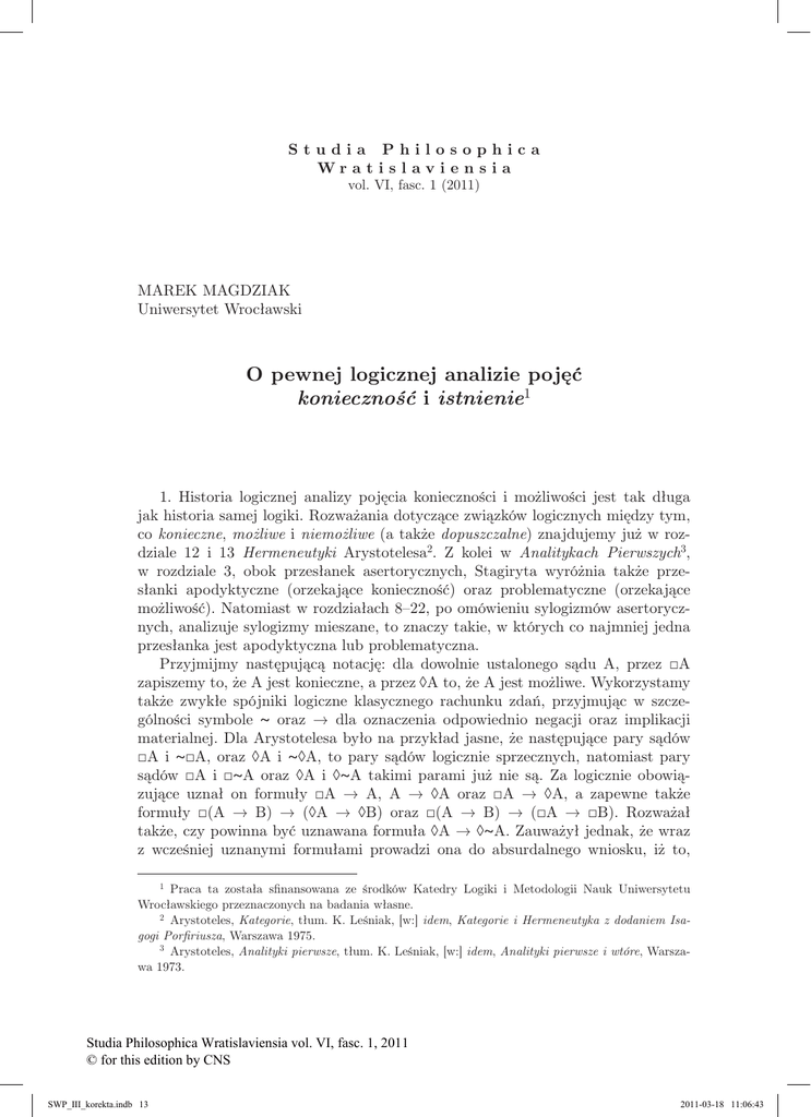 Pobierz artykuł - Studia Philosophica Wratislaviensia