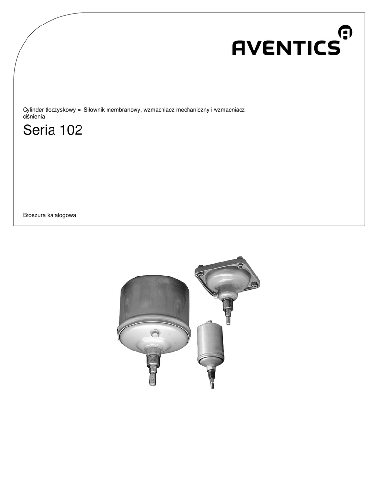 Cylinder tłoczyskowy ► Siłownik membranowy, wzmacniacz mechaniczny i wzmacniacz ciśnienia Seria 102 Broszura katalogowa 2 Cylinder tłoczyskowy ► Siłownik membranowy, wzmacniacz mechaniczny i wzmacniacz ciśnienia Seria 102 Cylinder tłoczyskowy, Seria 102 ► Przyłącza: G 1/4 - G 1/2 ► O działaniu pojedynczym, wsunięty w stanie niezasilanym ► Tłoczysko: gwint zewnętrzny siłownik membranowy, Seria 102 ► Przyłącza: G 1/4 - G 1/2 ► dwustronnego działania ► Tłoczysko: gwint zewnętrzny siłownik membranowy, Seria 102 ► Przyłącza: G 1/4 - G 1/2 ► O działaniu pojedynczym, wsunięty w stanie niezasilanym ► Tłoczysko: gwint zewnętrzny Cylinder tłoczyskowy, Seria 102 ► Przyłącza: G 1/2 ► dwustronnego działania ► Tłoczysko: gwint zewnętrzny 4 6 8 10 Akcesoria Przegląd akcesoriów Przegląd akcesoriów 12 Mocowania siłowników Nakrętka mocowania siłownika, Seria MR3 13 Mocowania tłoczysk Nakrętka tłoczyska, Seria MR9 Głowica widełkowa, Seria AP2 ► stal ocynkowana 14 Głowica widełkowa, Seria PM6 ► stal ocynkowana 15 Głowica przegubowa z kołnierzem, Seria AP6 ► stal ocynkowana 16 Pogrubione numery materiałowe są dostępne w centralnym magazynie w Niemczech, informacje szczegółowe patrz Koszyk Katalog elementów pneumatycznych, PDF online, stan 2017-02-27, © AVENTICS S.à r.l., zmiany zastrzeżone 14 3 Cylinder tłoczyskowy ► Siłownik membranowy, wzmacniacz mechaniczny i wzmacniacz ciśnienia Seria 102 Głowica przegubowa bez kołnierza, Seria AP6 ► stal ocynkowana Pogrubione numery materiałowe są dostępne w centralnym magazynie w Niemczech, informacje szczegółowe patrz Koszyk Katalog elementów pneumatycznych, PDF online, stan 2017-02-27, © AVENTICS S.à r.l., zmiany zastrzeżone 17 4 Cylinder tłoczyskowy ► Siłownik membranowy, wzmacniacz mechaniczny i wzmacniacz ciśnienia Cylinder tłoczyskowy, Seria 102 ► Przyłącza: G 1/4 - G 1/2 ► O działaniu pojedynczym, wsunięty w stanie niezasilanym ► Tłoczysko: gwint zewnętrzny Króciec sprężonego powietrza Gwint wewnętrzny Ciśnienie robocze min/max 2 bar / 8 bar Temperatura otoczenia min./maks. -20°C / +70°C Temperatura medium min./maks. -20°C / +70°C Medium Sprężone powietrze Maks. wielkość cząstek 50 µm Zawartość oleju w sprężonym powietrzu 0 mg/m³ - 5 mg/m³ Ciśnienie służące do określania sił działania tłoka 6 bar Materiały: P102_K a9 Rura cylindra Stal Tłoczysko Stal Pokrywa przednia Stal Uszczelka Kauczuk nitrylowy Uwagi Techniczne ■ Punkt rosy pod ciśnieniem musi leżeć co najmniej 15 °C poniżej temperatury otoczenia i medium i może wynosić max. 3 °C. ■ Zawartość oleju w sprężonym powietrzu musi być stała przez cały okres żywotności. ■ Stosuj wyłączne oleje zaaprobowane przez firmę AVENTICS, patrz rozdział „Informacje Techniczne“. ■ Tolerancja przy skoku 40 mm, 50 mm, 80 mm: ± 3 mm ■ Tolerancja przy skoku 100 mm: +6 mm/-1 mm Śr. tłoka [mm] Siła tłoka przy wysuwaniu Siła sprężynowania min. - max. 85 250 1600 3000 25000 [N] 130 - 320 130 - 320 900 - 2750 Śr. tłoka Gwint tłoczyska Przyłącza Skok 80 60 M12x1,25 G 1/4 60 M12 G 1/4 85 M12x1,25 G 1/4 85 M12 G 1/4 1022100000 1027100000 1022200000 1027200000 - 100 - - - - 1027300000 Śr. tłoka Gwint tłoczyska Przyłącza 250 M24x2 G 1/2 100 1022300000 Śr. tłoka 60 1 1,5 85 250 100 - - 22,2 Skok 80 Ciężar [kg] 60 [N] Skok 80 250 M24 G 1/2 - - Pogrubione numery materiałowe są dostępne w centralnym magazynie w Niemczech, informacje szczegółowe patrz Koszyk Katalog elementów pneumatycznych, PDF online, stan 2017-02-27, © AVENTICS S.à r.l., zmiany zastrzeżone 5 Cylinder tłoczyskowy ► Siłownik membranowy, wzmacniacz mechaniczny i wzmacniacz ciśnienia Cylinder tłoczyskowy, Seria 102 ► Przyłącza: G 1/4 - G 1/2 ► O działaniu pojedynczym, wsunięty w stanie niezasilanym ► Tłoczysko: gwint zewnętrzny Rozmiary ØE ZK EE V ØG C W S ZB ØD A NV KK ØMM B 23504 Śr. tłoka 60 24 M 24 11 54 66 30 18 30 41 W Y – G 1/4 M12 KK MM 85 24 M24 11 77 93 30 18 30 41 – G 1/4 M12 14 250 48 M48x3 20 56 268 50 33 40 60 – G 1/2 M24 28 Śr. tłoka NV PB – 222 181 85 12 – 222 181 250 25 – 385 325 60 A 12 B C ZB D E G S V ZK Pogrubione numery materiałowe są dostępne w centralnym magazynie w Niemczech, informacje szczegółowe patrz Koszyk Katalog elementów pneumatycznych, PDF online, stan 2017-02-27, © AVENTICS S.à r.l., zmiany zastrzeżone EE 14 6 Cylinder tłoczyskowy ► Siłownik membranowy, wzmacniacz mechaniczny i wzmacniacz ciśnienia siłownik membranowy, Seria 102 ► Przyłącza: G 1/4 - G 1/2 ► dwustronnego działania ► Tłoczysko: gwint zewnętrzny Króciec sprężonego powietrza Gwint wewnętrzny Ciśnienie robocze min/max 2 bar / 8 bar Temperatura otoczenia min./maks. -20°C / +70°C Temperatura medium min./maks. -20°C / +70°C Medium Sprężone powietrze Maks. wielkość cząstek 50 µm Zawartość oleju w sprężonym powietrzu 0 mg/m³ - 5 mg/m³ Ciśnienie służące do określania sił działania tłoka 6 bar Materiały: P102_M a1 Rura cylindra Stal Tłoczysko Stal Pokrywa przednia Stal Uszczelka Kauczuk nitrylowy Uwagi Techniczne ■ Punkt rosy pod ciśnieniem musi leżeć co najmniej 15 °C poniżej temperatury otoczenia i medium i może wynosić max. 3 °C. ■ Zawartość oleju w sprężonym powietrzu musi być stała przez cały okres żywotności. ■ Stosuj wyłączne oleje zaaprobowane przez firmę AVENTICS, patrz rozdział „Informacje Techniczne“. ■ Skoki cylindrów membranowych są zależne od tolerancji. ■ Tolerancja przy skoku 40 mm, 50 mm, 80 mm: ± 3 mm Śr. tłoka Siła tłoka przy wsuwaniu Siła tłoka przy wysuwaniu [mm] 113 160 2880 5800 11600 [N] 3000 6000 12000 Śr. tłoka Gwint tłoczyska Przyłącza Skok 40 80 M12x1,25 G 1/4 80 M12 G 1/4 113 M16x1,5 G 1/4 160 M20x1,5 G 1/2 1021100000 1026100000 - 113 M16 G 1/4 50 - - Śr. tłoka Gwint tłoczyska Przyłącza 160 M2