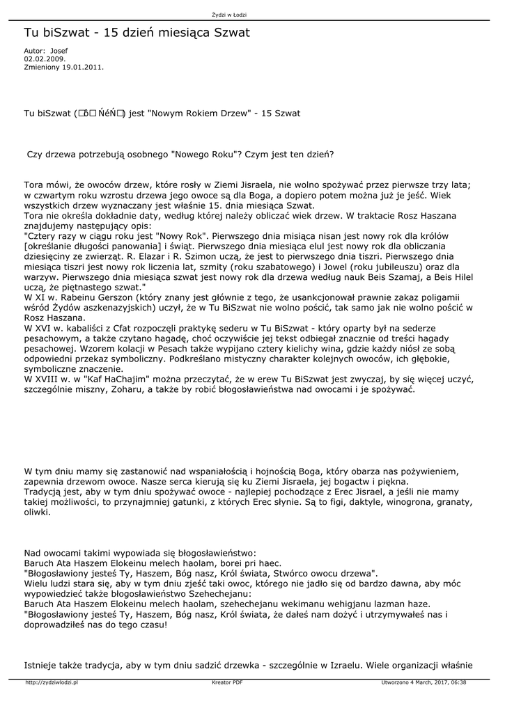 wszystkich drzew wyznaczany jest właśnie 15. dnia miesiąca Szwat.