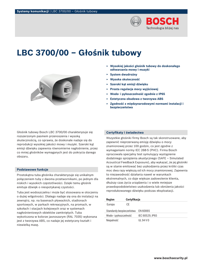 LBC 3700/00 – Głośnik tubowy - Fortuna Communication Sp. z o.o.