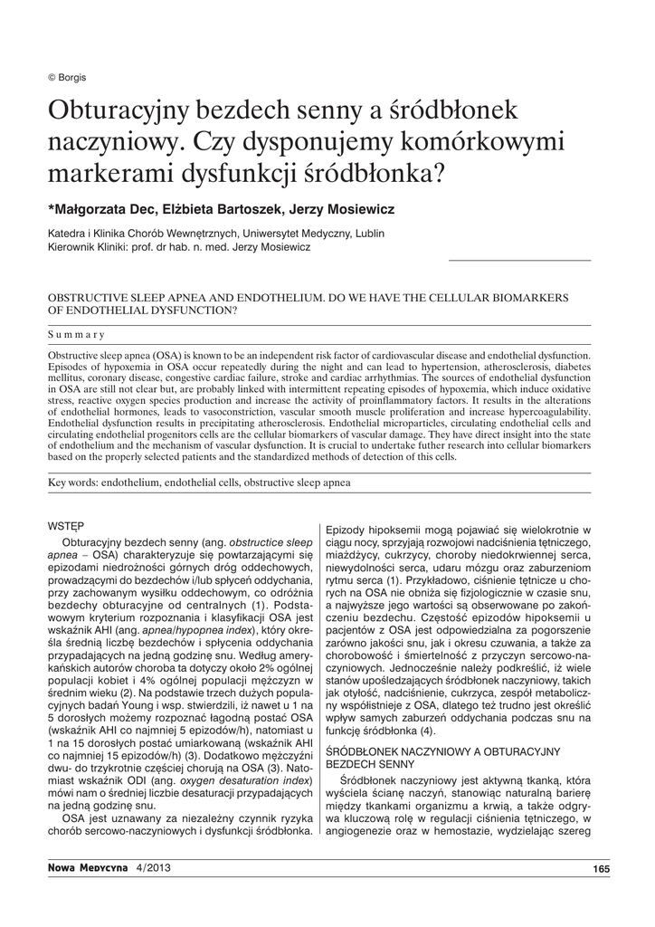 Obturacyjny bezdech senny a śródbłonek