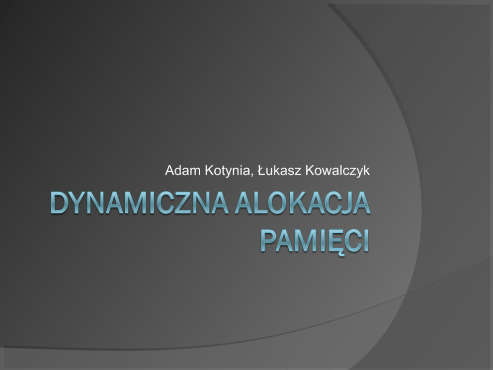 Adam Kotynia, Łukasz Kowalczyk Dynamiczna alokacja pamięci Alokacja pamięci oraz dezalokacja pamięci – jest to odpowiednio przydział i zwolnienie ciągłego obszaru pamięci. Po uruchomieniu, proces (program) otrzymuje od systemu operacyjnego jedną lub więcej pul dostępnej pamięci możliwej do dowolnego wykorzystania. W zależności od przyjętej konstrukcji i zastosowania obszar nazywany jest stertą lub stosem. W trakcie działania program może zażądać od systemu operacyjnego większej ilości pamięci (alokacja) lub też zwolnić niepotrzebny obszar (dezalokacja). Wewnętrznie programy samodzielnie zarządzają przydzieloną im pamięcią – niskopoziomowe języki programowania dostarczają interfejs programistyczny od zarządzania stertą, który oferuje wyłącznie możliwość zarezerwowania pewnego obszaru (alokacja) i późniejszego jego zwalniania (dezalokacja). Wiele wysokopoziomowych języków programowania automatycznie przeprowadza procedurę dezalokacji bez udziału programisty. Dla przykładu w języku C do ręcznej dynamicznej alokacji i dezalokacji pamięci służą funkcje biblioteki standardowej malloc i free. W języku C++ służą do tego specjalne słowa kluczowe (operatory) new oraz delete. Systemy operacyjne automatycznie zwalniają pamięć przydzieloną procesom, gdy te zakończą działanie bez uprzedniej dezalokacji otrzymanej pamięci. Na poziomie aplikacji pominięcie dezalokacji doprowadza do wycieku pamięci. Co w przypadku aplikacji działającej długi czas (np. serwery) jest uważane za poważny błąd jako, iż z biegiem czasu proces taki będzie potrzebował coraz więcej pamięci, co może doprowadzić nawet do jego zawieszenia, unicestwienia. Znacznego spowolnienia działania całego systemu. Alokacja nie powiedzie się, gdy nie istnieje wolny ciągły obszar pamięci o wymaganym rozmiarze. Wykorzystanie kopca może wpływać na fragmentację pamięci. Zbyt duża ilość takich „dziur” powoduje marnowanie pamięci. Dlatego też współczesne systemy same śledzą takie sytuacje i odpowiednio zarządzają tymi sektorami. Jeśli chodzi o zastosowanie dynamicznej alokacji pamięci to już w średnio zaawansowanych programach pojawia się potrzeba dynamicznego rezerwowania pamięci. Na przykład, użytkownik podaje nam rozmiar tablicy a my musimy taką tablicę utworzyć i na niej operować (nie znając wcześniej nawet maksymalnego jej rozmiaru). Rozwiązaniem takich problemów jest właśnie dynamiczna alokacja pamięci. DOS Alokacja - AH=48h przerwania 21h BX - liczba paragrafów do zaalokowania (1 paragraf = 16 bajtów). AX - numer segmentu z zarezerwowaną dla nas pamięcią. Programy typu .com z założenia zajmują całą dostępną pamięć, więc aby coś zaalokować, należy najpierw trochę pamięci zwolnić. Zwalnianie pamięci - funkcja 49h ES - numer segmentu do zwolnienia. Jak widać, teoria nie jest skomplikowana. Przejdźmy więc może do przykładu. Zaalokowanie 160 bajtów, wyzerowanie i zwolnienie. section ..start: .text mov mov int mov mov mov mov int jc mov mov mov int mov xor xor cld rep mov int jc mov mov int ah, 49h es, [ds:2ch] 21h ax, seg info ds, ax ah, 48h bx, 10 21h problem es, ax ah, 9 dx, info 21h cx, 160 di, di al, al mov int ax, 4c00h 21h stosb ah, 49h 21h problem ah, 9 dx, info2 21h ; ES=segment naszych zmiennych środowiskowych ; zwalniamy ; DS = nasz segment danych (w razie czego) ; rezerwuj pamięć ; 10 paragrafów ; CF=1 oznacza błąd (skok jeśli Carry Flag równe 1) ; ES = przydzielony segment ; wyświetl pierwszy napis ; tyle bajtów wyzerujemy ; poczynając od adresu 0 w nowym segmencie ; AL = 0 ; kierunek: do przodu ; zerujemy obszar ; zwalniamy pamięć problem: koniec: section .data info db "Udana alokacja pamieci.",10,13,"$" info2 db "Udane zwolnienie pamieci.",10,13,"$" ; program typu .exe musi mieć zadeklarowany stos section stack stack resb 400h Zwalnianie pamięci w programach typu .com polega na zmianie rozmiaru segmentu kodu. Wykonuje się to funkcją AH=4Ah przerwania 21h, w ES podając segment, którego rozmiar chcemy zmienić (nasz segment kodu - CS), a w BX - nowy rozmiar w paragrafach. Typowy kod wygląda więc tak: mov mov mov shr inc mov int ax, cs es, ax bx, koniec bx, 4 bx ah, 4ah 21h ; będziemy zmieniać rozmiar segmentu kodu ; BX = rozmiar segmentu kodu ; BX /= 16 - rozmiar w paragrafach ; +1, żeby nie obciąć naszego programu ; funkcja zmiany rozmiaru Linux Alokacja - sys_brk (ustalającą najwyższy dostępny adres w sekcji danych). Przyjmuje ona jeden argument: EBX = 0, jeśli chcemy otrzymać aktualny najwyższy dostępny dla nas adres w sekcji danych. Tę wartość powiększymy potem o żądany rozmiar pamięci. EBX różny od 0, jeśli chcemy ustawić nowy najwyższy adres w sekcji danych. Adres musi być rozsądny co do wartości i taki, by rezerwowana pamięć nie wchodziła na biblioteki załadowane dynamicznie podczas samego uruchamiania programu. Jeśli coś się nie udało, sys_brk zwróci -1 (i ustawi odpowiednio zmienną errno) lub też zwróci ujemny kod błędu. Oczywiście, argument funkcji może być większy (alokacja) lub mniejszy (zwalnianie pamięci) od wartości zwróconej przez sys_brk przy EBX=0. Jak widać, teoria nie jest skomplikowana. Przejdźmy więc może do przykładu. Ten krótki programik ma za zadanie zaalokować 16kB pamięci (specjalnie tak dużo, żeby przekroczyć 4kB - rozmiar jednej strony pamięci - i udowodnić, że pamięć rzeczywiście została przydzielona) i wyzerować ją (normalnie zapisywanie po nieprzydzielonej pamięci skończy się zamknięciem programu przez system). section global _start _start: .text mov xor int add mov mov int cmp jl eax, 45 ebx, ebx 80h eax, 16384 ebx, eax eax, 45 80h eax, 0 .problem ; sys_brk mov sub mov xor std rep cld mov mov mov mov int edi, eax edi, 4 ecx, 4096 eax, eax ; EDI = najwyższy dostępny adres ; EDI wskazuje na ostatni dostępny DWORD ; tyle DWORDów zaalokowaliśmy ; będzi