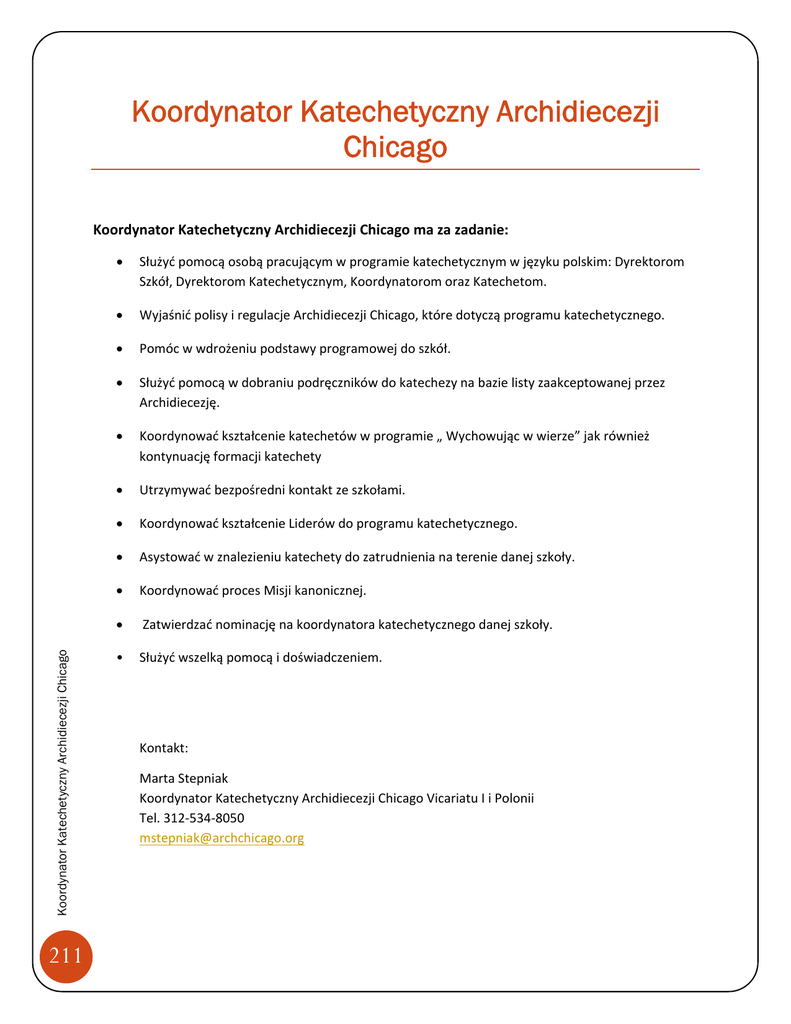 Koordynator Katechetyczny Archidiecezji Chicago