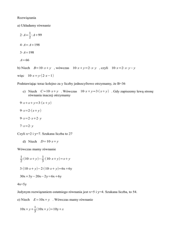 Rozwiązania a) Układamy równanie 2⋅A= 1 2 ⋅A+99 b) Niech B