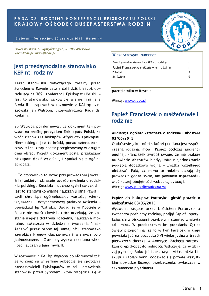 14 nr Biuletynu Krajowego Ośrodka Duszpasterstwa Rodzin