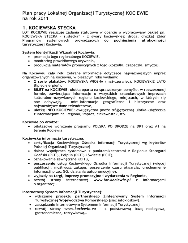 Plan pracy Lokalnej Organizacji Turystycznej KOCIEWIE na rok