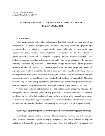 Ks. dr Dariusz Buksik Instytut Psychologii UKSW REFLEKSJA NAD