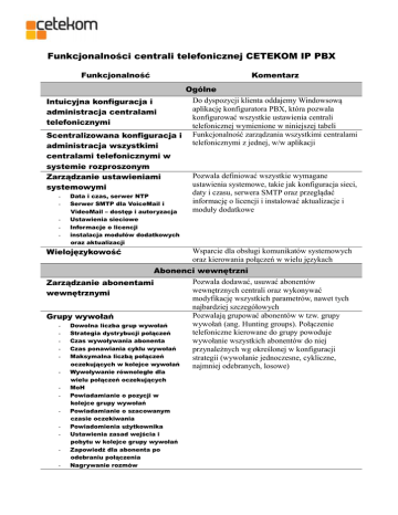 Funkcjonalności centrali telefonicznej CETEKOM IP PBX