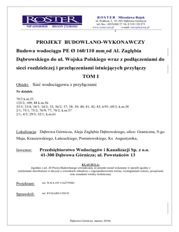 PROJEKT BUDOWLANO-WYKONAWCZY Budowa wodociągu PE Ř
