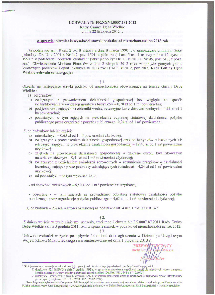 kwotowychpoda&6wi oplat lokalnychw 2013 roku ( M.P. z 2012,poz. 587) Rada Cminy Dtbe