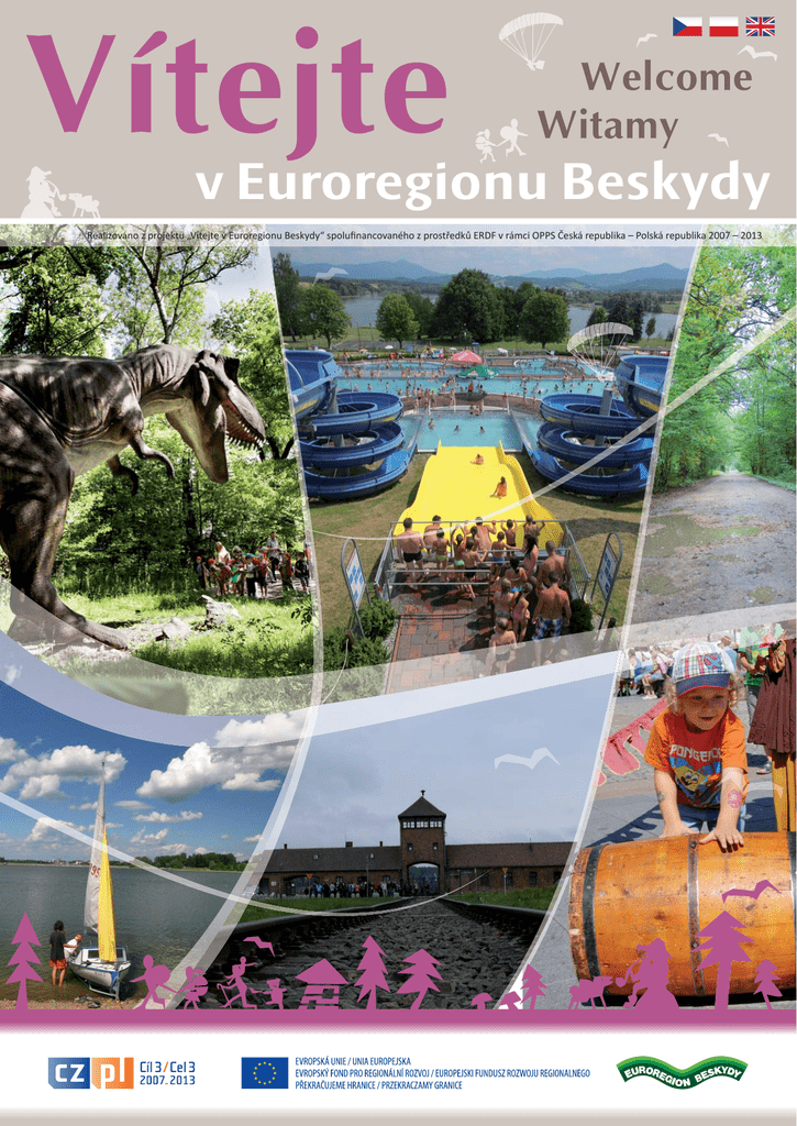 Vítejte Welcome Witamy v Euroregionu Beskydy Realizováno z projektu „Vítejte v Euroregionu Beskydy“ spolufinancovaného z prostředků ERDF v rámci OPPS Česká republika – Polská republika 2007 – 2013 Powiat oświęcimski Powiat oświęcimski jest doskonałym miejscem spędzania wolnego czasu dla pasjonatów historii i miłośników przyrody. Piękne krajobrazy, charakterystyczne dla tej okolicy liczne stawy rybne, czyste rzeki oraz interesujące obiekty zabytkowe sprawiły, że ziemia oświęcimska jest atrakcyjnym terenem rekreacji. Przyrodniczą ciekawostką powiatu jest słynna „Dolina Karpia” znajdująca się w okolicach Zatora. Trasy spacerowe nad Skawą, wzdłuż zielonych zarośli wiklinowych, stawów z kępami tataraku i sitowia oraz licznymi siedliskami ptactwa wodnego, m.in. czapli, łabędzi, kormoranów, są wspaniałym miejscem spacerów oraz obserwacji ornitologicznych. Kilkaset kilometrów tras rowerowych pozwala połączyć aktywny wypoczynek z poznawaniem najpiękniejszych zakątków regionu. Szlaki dostępne dla turystów na rowerach przebiegają przez najciekawsze i najpiękniejsze zakątki powiatu oświęcimskiego. Dolina Soly Oswiecim Okres Osvětim The County of Oświęcim Okres Osvě m je úžasným místem k strávení volného času pro nadšence historie a milovníky přírody. Díky krásné přírodě, mnoha rybníkům, typickým pro tuto oblast, čistým řekám a zajímavým historickým památkam je okolí Osvě mi atrak vní rekreační oblas . Přírodní raritou kraje je slavná „Dolina Karpia”, která se nachází v blízkos Zatoru. Pěší trasy přes Skawu, podél zelených křovin vrbového prou , rybníků s trsy kapradin a puškvorce a spoustou vodního ptactva, včetně volavek, labu , kormoránů, je skvělým místem pro pěší turis ku a pozorování ptáků. Stovky kilometrů cyklis ckých stezek umožňují kombinovat ak vní dovolenou s poznáváním nejkrásnějších čás regionu. Stezky, přístupné i pro turisty na kolech, procházejí nejzajímavějšími a nejhezčími kouty osvě mského kraje. The county of Oświęcim is a wonderful loca on to spend your free me if you are a history fan or a lover of natural beau es. Surroundings of the town of Oświęcim became an a rac ve recrea onal area due to its gorgeous landscape, plenty of ponds that are typical of this loca on, clear rivers and interes ng historical monuments. “Dolina Karpia” (“Carp Valley”), the famous natural rarity, is located near the town of Zator. Footpaths over the river Skawa along green willow branches, ponds with tu s of ferns and sweet flags and abounding with water birds including herons, swans and cormorants are a great place for hiking and observa on of birds. Hundreds of kilometers of cycling tracks enable visitors to combine an ac ve holiday and sightseeing in the most beau ful parts of the region. The tracks that are accessible both for tourists and cyclists go through the most interes ng and picturesque places of the county of Oświęcim. Uprawianie sportów wodnych Rzeka Soła Zamek w Oświęcimiu Zamek Książąt Oświęcimskich, Muzeum Zamek w Oświęcimiu Zamek zlokalizowany jest na wzgórzu, które w czasach pogańskich najprawdopodobniej było miejscem kultu. Rozbudowę wzgórza rozpoczęto już w średniowieczu (XI wiek). W Zamku siedzibę mieli kasztelanowie i książęta oświęcimscy. Był wielokrotnie niszczony przez pożary i powodzie. Najstarszymi obiektami zamkowymi są: gotycka wieża obronna (XIII/XIV w.) oraz fragment muru obronnego i basteja. Wieża jest jedną z pierwszych budowli ceglanych w Małopolsce oraz najwyższym zachowanym murem gotyckim w Polsce południowej (40 m). Dziś w Zamku mieści się Muzeum Zamek. Hrad osvětimských knížat, Muzeum hradu v Osvětimi Hrad se nachází na kopci, který byl pravděpodobně v pohanských dobách místem uc vání. Stavba komplexu začala již ve středověku (11. stole ). Hrad byl sídlem kastelánů a osvě mských knížat. Byl několikrát zničen požáry a povodněmi. Nejstaršími objekty hradu jsou: go cká obranná věž (13.-14. stole ) a část obranné zdi a bašty. Věž je jednou z prvních zděných budov v Malopolsku a nejvyšší zachovalou go ckou zdí v jižním Polsku (40 m). Dnes je na hradě umístěno muzeum. The castle of the princes of Oświęcim, Museum of the castle in the town of Oświęcim The castle is situated on the hill that probably used to be a place of worship in pagan mes. The construc on of the complex started as early as in medieval mes (11th century). The castle used to be the seat of castle wardens and princes of Oświęcim. It was damaged by fires and floods for several mes. A defensive Gothic tower (13th – 14th century) and a part of a defensive wall and bas on belong to the oldest structures of the castle. The tower is one of the first construc ons made of stone in Lesser Poland and the tallest preserved Gothic wall in Southern Poland (40 m tall). Nowadays, a museum is located there. Zator DinoZatorland – park ruchomych dinozaurów, jeden z najnowocześniejszych w naszym kraju. Można tam wspaniale spędzić wolny czas, odwiedzić salę kinową oraz zaznać niemałych emocji w zetknięciu z wielkimi gadami w naturalnej wielkości, poruszającymi się i wydającymi odgłosy jak żywe. Również dla najmłodszych przewidziano mnóstwo atrakcji, od piaskownicy z „kośćmi dinozaurów” po tor gokartowy. Zator Dinozatorland – park pohyblivých dinosaurů, jeden z nejmodernějších v zemi. Je to možnost, jak skvěle strávit volný čas, navš vit kino a zažít nezapomenutelné emoce v kontaktu s velkými plazy v jejich přirozené velikos , kteří se navíc pohybují a vydávají zvuky jako živí. Také pro nejmenší nabízí spoustu atrakcí, od pískoviště s „kostmi dinosaurů” po motokárovou dráhu. The Town of Zator Park ruchomych dinozaurów w Zatorze Dinozatorland is a park full of moving 