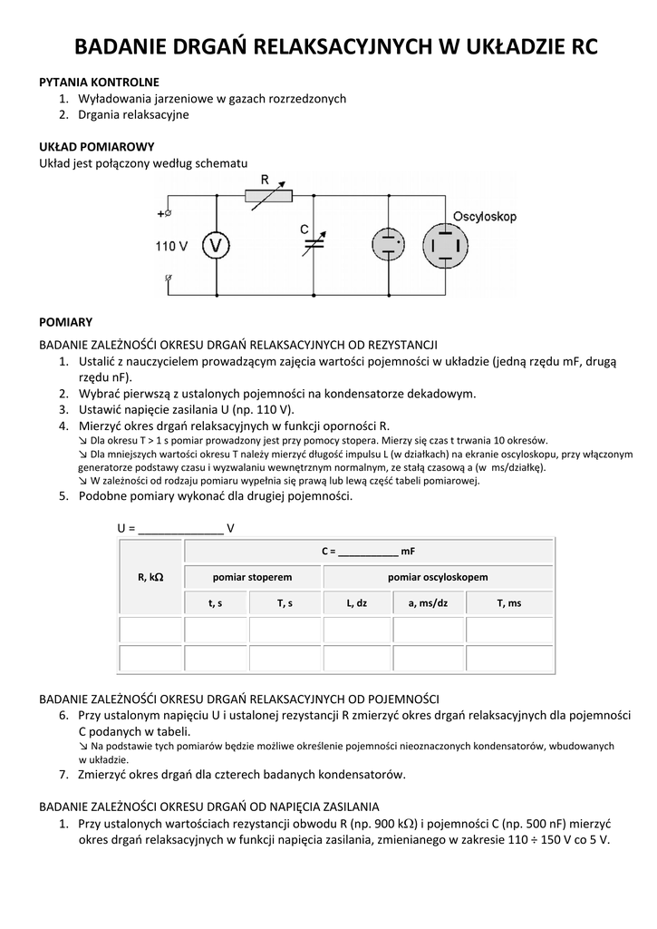 BADANIE DRGAŃ RELAKSACYJNYCH W UKŁADZIE RC