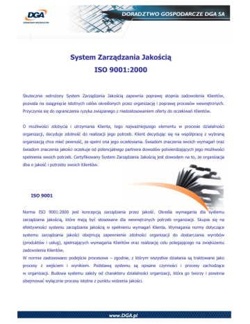 ! " # % $ & ' ( ( ' & + &! ( &!* ( ' ' !) & $ ! ( !% &( & # ' $ ! !2 & '4 & ' ! 2 5 ' !" !6 & ( ' & # ,% -../0 1... 3 ! ' ! !" & ' ' ' # ( $ ' #$ $ ' ! % 2 # & ' !2 # ( ,%-../0 1... 0 & ' &' ' ' # ! # , ,%-../0 1... 0 # # & ' 3 & 3 & 4 7' 4 # & &' ' & & ' &! 8# ( # !9 ( # # & $ # # !* & ( ' $! &' ( ) * ()+ , +, - :' ,%-../0 1...! 8 " ;<= ;<=> 0 Audit zerowy ; Opracowanie dokumentacji % $ 3 $ 4 $ ? Szkolenie Weryfikacja stosowania Systemu Certyfikacja Systemu (. ,% -../0 1... ; " : " ( ? ' # ) * ()+ , +, - ;<= ! =! # & ,% -../0 1... ? 5 5 3 45 ;<= " ' ;<= > ' ' 0 ()+ / 5 . "0()+ 12&0()+ # 0()+ +* 0()+ + 7 0()+ 0()+ ( ! " 0()+ / 3 0()+ 6 73 0()+ 4 " 0()+ 13. 7 , % @ 0()+ ! ;<= ! =! 3 ! !,% /A../ "+B+ /C../ D=**" , @ 6E* 8 FF-- 6 /G... "= GH =C... ,%7 I /H-A- ,%/F.1G4 # <=" ,%7 , 8* /FF-- 6 3 # 4 !