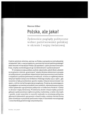 Marcos Silber Polska, alejaka? Zydowskie poglqdy p o lit y c z n e w o b e c p a n s t w o w o s c i polskiej w okresie I wojny swiatowej 0 jakim paristwie mowimy, patrz^c na Polsk? z perspektyw yjej zydowskiej mniejszosci? Jaki, z owej perspektywy, powinien bye ksztalt panstwa polskiego? Jakie stosunki winny i^czyc Polsk? z jej s^siadami, a jakie panowac wewn^trz kraju, m i?dzy zamieszkujqeymi go narodowosciami i spolecznosciami? W niniejszym eseju poddam analizie odpowiedzi, jakich Zydzi udzielali na te pytania w okresie ״ granicznym ” m i?dzy dwiema odmiennymi sytuacjami politycznym i: porz^dkiem im perialnym (pod panowaniem austriackim 1 rosyjskim) a polskim paristwem narodowym . Analiza ta w glownej m ierze dotyczyc b?dzie Galicji oraz Krolestwa Polskiego m i?dzy 1914 a 1918 r., gdy terytoria te byly przedm iotem sporow m i?dzy roznym i m ocarstw am i i nacjami, a ich 10s nie byl bynajmniej przesqdzony. Przyjrz? si? zm ieniajecym si? pogl^dom na kwesti? przyszlosci ziem polskich, reprezentowanym przez rozne zyd ow skie ugrupow ania polityczne w K rolestw ie Polskim i Galicji w okresie I wojny sw iatow ej. P rzed staw i? skutki relacji m i?d zy poszczegolnym i spolecznosciam i (glownie polske i zydowske), a takze rol? rz^du i sposob, w ja k i w szystk ie te czyn n ik i w p lyn ?ly na orientacj? polityczne glow nych zydow skich ugrupowari w latach wojny, omowi? row niez formy, jakie orientacje te przybraly pod koniec wojny w kontekscie w zrastajecego i coraz bardziej gw altow nego antysem ityzm u. Polska, a l e j a k a ? 59 Wybuch wojny Zydzi galicyjscy, podobnie ja k w i?kszosc polskich partii politycznych dzialaj^eych w Galicji, opow iedzieli si? za rozw i^zaniem austriacko-polskim . Przyw odcy gm in zydowskich w Galicji w yrazili, w im ieniu ludnosci zydowskiej, peine poparcie dla starari NKN oraz polskich d^zeri do polqczenia Krolestwa Polskiego i Galicji w ram ach zreformowanego imperium. Pozostawalo to w zgodzie z postaw^ lojalnosci wobec A u strii1. W wielu gm inach zydow skich odprawiano m odly za niepodleglosc Polski, Zydzi brali u d zial w u ro czy sty ch m anifestacjach patriotycznych. Podczas gdy w Galicji Zachodniej u ro czysto sci te o rgan izo w aly gm iny, w Galicji Wschodniej, gdzie nalezalo liczyc si? row niez z uczuciam i Ukraincow, ich inicjatorami byly zazw yczaj osoby prywatne. M lodziez zydow ska i zydow scy akty w isci polityczni brali udzial w polskim czynie zbrojnym. Wsrod ochotnikow zydowskich wyrozniali si? ci z rodzin 0 polskich tradycjach niepodleglosciowych - zazw yczaj kupcy, przedstaw iciele wolnych zawodow lub rzem ieslnicy. Byli oni cz?sto zaangazowani w dzialalnosc Zwi^zku Strzeleckiego i Towarzystwa ״ Strzelec”2. Ich dosw iadczenie predysponowalo ich do pracy w legionow ych zaklad ach prod ukcyjnych , magazynach, ad m inistracji oraz jed n o stk a ch m edycznych. Zydzi wspolpracowali z lokalnymi przedstawicielam i NKN, W e t e r a n p o w s ta n ia s ty c z n io w e g o J o z e f H e r tz z s y n e m le g io n is t q , H e n ry k ie m H e r tz e m - B a r w in s k im , W a r s z a w a , 1916, Y IV O w szczegolnosci w zakresie finansow ym i gospodarczym . W wielu galicyjskich m iejscow osciach pom agali w zdobyw aniu tkan in i zyw n o sci po obnizonych cenach. Rzem ieslnicy z zachodniej Galicji zglaszali si? do pracy w warsztatach legionowych w Krakowie, Oswi?cimiu, a nast?pnie w Piotrkowie. Podobnie jak katolicy, Zydzi przekazy wali pieni^dze i pomoc rzeczow^, wspomagajqc polski czyn zbrojny, np. kupcy z Rzeszowa dostarczali tkaniny 60 1 Zielinski 2005, s. 108. 2 Konic 1933, s. 542-549; Zygmuntowicz 2002, s. 163. Zyd, Polak, legionisla 1914-1920 1 weln?, a zydow scy rzem ieslnicy z Sanoka i Tarnobrzega szyli ochotniczo mundury, sakw y i buty3. W zro st n astro jow n acjo n alistyczn ych i an tysem ickich w latach poprzedzaj^cych w ybuch I wojny swiatowej, a zw laszcza podczas samej wojny, spowodowat odply w m lodziezy zydowskiej z szeregow polskiego ruchu niepodleglosciowego. Wiodqca wsrod spolecznosci zydowskiej w Galicji i Krolestwie Kongresowym grupa, integracjonisci (zwani rowniez asymilatorami), wedle ktorych wspolnym mianownikiem Zydow byla przynaleznosc do religii judaistycznej, utracila wielu zw olennikow na rzecz przybieraj^cego na sile nacjonalizm u zydow skiego, glow nie syjonizm u. Syjonisci postrzegali Zydow jako now oczesny narod, ktorem u w krajach diaspory nalezq si? prawa narodowe4. Ci, ktorzy pozostali w ierni obozowi integracji, zazw yczaj utozsam iali si? z narodem polskim , okreslaj^c siebie jako ״ Polakow w yznania mojzeszowego”. B?d^c cz?sci^ narodu polskiego, bronili jednoczesnie pelnego rownouprawnienia polskich Zydow oraz ich calkowitej integracji z polskim sp oleczeh stw em , zarow n o w sensie sp oleczn ym , ja k i j?zyk o w ym . Przywodcy tego obozu zdecydow anie p rzeciw staw iali si? rosn^cym w plyw om zydowskiego nacjonalizm u w Galicji, akty wnie zw alczali row niez w szelkie zydowskie z^dania narodowe. Nie rezygnuj^c z w alki 0 peine prawa obywatelskie, p rzeciw staw iali si? z^daniom praw m niejszosciow ych dla Zydow w przyszlym , przeksztalconym , pol^czonym z G alicji Krolestwie Polskim. Galicyjscy przywodcy zydowscy z obozu integracyjnego (przedstawiciele zydowscy w austriackiej Radzie Panstwa i galicyjskim Landtagu oraz przewodnicz^cy najwi?kszych gmin wyznaniow ych w Galicji - Lwowa, Krakowa i Przemysla) podpisali deklaracj?, ktora ukazala si? 9 lipca 1915 r. w ״ Polen”, niem ieckoj?zycznym dzienniku NKN5. W yrazala ona poparcie dla polskiego planu narodowego oraz rozwi^zania austriacko-polskiego, a takze nawolywala do przyznania Zydom ״ faktycznego rownouprawnienia”, dzi?ki ktoremu mogliby stac si? cz?sci^ gospodarki i spoleczeristwa ״ we w szystkich dziedzinach polskiej kultury narodowej”. Konczyla si? niejednoznacznym oswiadczeniem : ״ w idzim y w w yzw oleniu Polski (...) jedyn^ drog? sprawiedliwego 3 Zielecki 1991, s. 289-296; Zielinski 2005, s. 302-309. 4 Mendelsohn 1981, s. 2 4 -3 6 