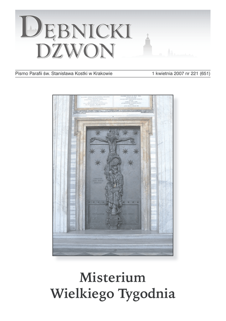 Pismo Parafii św. Stanisława Kostki w Krakowie 1 kwietnia 2007 nr 221 (651) Misterium Wielkiego Tygodnia Słowo Dla Życia Piłat, więc kazał zwołać arcykapłanów, członków Wysokiej Rady oraz lud i rzekł do nich: Przywiedliście mi tego człowieka pod zarzutem, że podburza lud. Otóż ja przesłuchałem Go wobec was i nie znalazłem w Nim żadnej winy w sprawach, o które Go oskarżacie. Ani też Herod - bo odesłał Go do nas; a oto nie popełnił On nic godnego śmierci. Każę Go, więc wychłostać i uwolnię. <A był obowiązany uwalniać im jednego na święta>. Zawołali, więc wszyscy razem: Strać Tego, a uwolnij nam Barabasza.(...). Piłat, chcąc uwolnić Jezusa, ponownie przemówił do nich. Lecz oni wołali: „ukrzyżuj, ukrzyżuj Go”. Zapytał ich po raz trzeci: „Cóż On złego uczynił? Nie znalazłem w Nim nic zasługującego na śmierć. Każę Go wychłostać i uwolnię”. Lecz oni nalegali z wielkim wrzaskiem domagając się, aby Go ukrzyżowano; i wzmagały się ich krzyki. Piłat, więc zawyrokował, żeby ich żądanie zostało spełnione. Uwolnił im tego, którego się domagali, a który za rozruch i zabójstwo był wtrącony do więzienia; Jezusa zaś zdał na ich wolę. Gdy Go wyprowadzili, zatrzymali niejakiego Szymona z Cyreny, który wracał z pola, i włożyli na niego krzyż, aby go niósł za Jezusem. A szło za Nim mnóstwo ludu, także kobiet, które zawodziły i płakały nad Nim. (...) Przyprowadzono też dwóch innych - złoczyńców, aby ich z Nim stracić. Gdy przyszli na miejsce, zwane Czaszką, ukrzyżowali tam Jego i złoczyńców, jednego po prawej, drugiego po lewej Jego stronie. Lecz Jezus mówił: Ojcze, przebacz im, bo nie wiedzą, co czynią. Potem rozdzielili między siebie Jego szaty, rzucając losy. A lud stał i patrzył. Lecz członkowie Wysokiej Rady drwiąco mówili: Innych wybawiał, niechże teraz siebie wybawi, jeśli On jest Mesjaszem, Wybrańcem Bożym. Szydzili z Niego i żołnierze; podchodzili do Niego i podawali Mu ocet, mówiąc: Jeśli Ty jesteś królem żydowskim, wybaw sam siebie. Był także nad Nim napis w języku greckim, łacińskim i hebrajskim: To jest król żydowski. Jeden ze złoczyńców, których [tam] powieszono, urągał Mu: Czy Ty nie jesteś Mesjaszem? Wybaw, więc siebie i nas. Lecz drugi, karcąc go, rzekł: Ty nawet Boga się nie boisz, chociaż tę samą karę ponosisz? My przecież - sprawiedliwie, odbieramy, bowiem słuszną karę za nasze uczynki, ale On nic złego nie uczynił. I dodał: Jezu, wspomnij na mnie, gdy przyjdziesz do swego królestwa. Jezus mu odpowiedział: Zaprawdę, powiadam ci: Dziś ze Mną będziesz w raju. Było już około godziny szóstej i mrok ogarnął całą ziemię aż do godziny dziewiątej. Słońce się zaćmiło i zasłona przybytku rozdarła się przez środek. Wtedy Jezus zawołał donośnym głosem: Ojcze, w Twoje ręce powierzam ducha mojego. Po tych słowach wyzionął ducha. Łk 22, 14 – 23, 56 2 MISTERIUM WIELKIEGO TYGODNIA I ŚWIĘTEGO TRIDUUM PASCHALNEGO Wielki Tydzień Rozpoczęliśmy najważniejsze dni Roku Liturgicznego. Nasze życie i zabieganie sprawia, iż wydaje się nam, że często nasza pobożność koncentruje się głównie na Świętach, mniej na Triduum. Warto może przypomnieć sobie, jakie jest znaczenie Wielkiego Tygodnia i Świętego Triduum w obchodach Roku Liturgicznego, dni, które najczęściej spędzamy w przygotowaniach do Świąt i niestety, często zapominamy o ich znaczeniu liturgicznym. Historia Wielkiego Tygodnia Pierwsze wzmianki o formowaniu się Wielkiego Tygodnia znajdują się w pamiętniku słynnej pątniczki Egerii. Świadczą one o formowaniu się liturgii dwutorowo - z jednej strony akcentowano wydarzenia z życia Chrystusa (Męka, Śmierć i Zmartwychwstanie), z drugiej zaś - nadawano charakter historyczny, wiążąc wydarzenia z datami. Niedziela Palmowa Wielki Tydzień rozpoczyna się od Liturgii Męki Pańskiej. Jak opisuje Egeria w wigilię Niedzieli Palmowej odbywała się procesja z Betanii do Jerozolimy, do bazyliki Anastasis. Egeria podkreśla radosny charakter obchodów. W procesji uczestniczyło wiele, dzieci, śpiewano radosne pieśni. W czasach późniejszych procesję przyjęły się na Wschodzie. Wprowadzano po woli elementy dramaturgiczne. Niesiono krzyż, biskup, jako reprezentant Chrystusa wjeżdżał do Jerozolimy na osiołku. Prawdopodobnie zdecydowanie później zwyczaj urządzania procesji przyjął się na Zachodzie. Otóż za czasów Leona Wielkiego obchodzono Niedzielę Męki Pańskiej, ale nie było procesji, czytano natomiast uroczyście Pasję według św. Mateusza. Dopiero dokumenty z IX wieku poświadczają, że obchody Niedzieli Palmowej związane były z bardzo uroczystymi procesjami. Procesje zwykle rozpoczynały się poza miastem i podążała do kościoła. Uczniowie i dzieci rozkładali swoje płaszcze, a w chwili śpiewania hymnu Ave Rex noster padali na ziemię. 3 MISTERIUM WIELKIEGO TYGODNIA I ŚWIĘTEGO TRIDUUM PASCHALNEGO W procesji niesiono Ewangelię lub Najświętszy Sakrament. Ludzie mieli palmy, które błogosławiono. Z IX wieku pochodzi hymn Gloria laus napisany ku czci Chrystusa Króla przez Teodulfa z Orleanu, zachowany w liturgii do dziś. Po dojściu do kościoła odprawiano uroczystą Mszę św. o Męce Pańskiej. Niedziela Palmowa była nie tylko dniem rozpoczęcia obchodów ku czci Męki Pańskiej. W tym dniu rozpoczynał się również okres naprawiania różnych szkód, wyrządzonych innym, okres przebaczenia i pojednania. Nie odbywało się to bez wpływu na życie społeczności lokalnej. I tak na przykład w wielu regionach biskupowi przysługiwało prawo uwolnienia jednego lub kilku więźniów. Uporządkowanie liturgii Wielkiego Postu Wraz z upływem lat i wieków zwyczaje i obchody w zależności od miejsca się różniły od siebie i jak wiemy, św. Pius V ujednolicił liturgię. Starał się jednak w tym nie zatracić nic z bogactwa lit