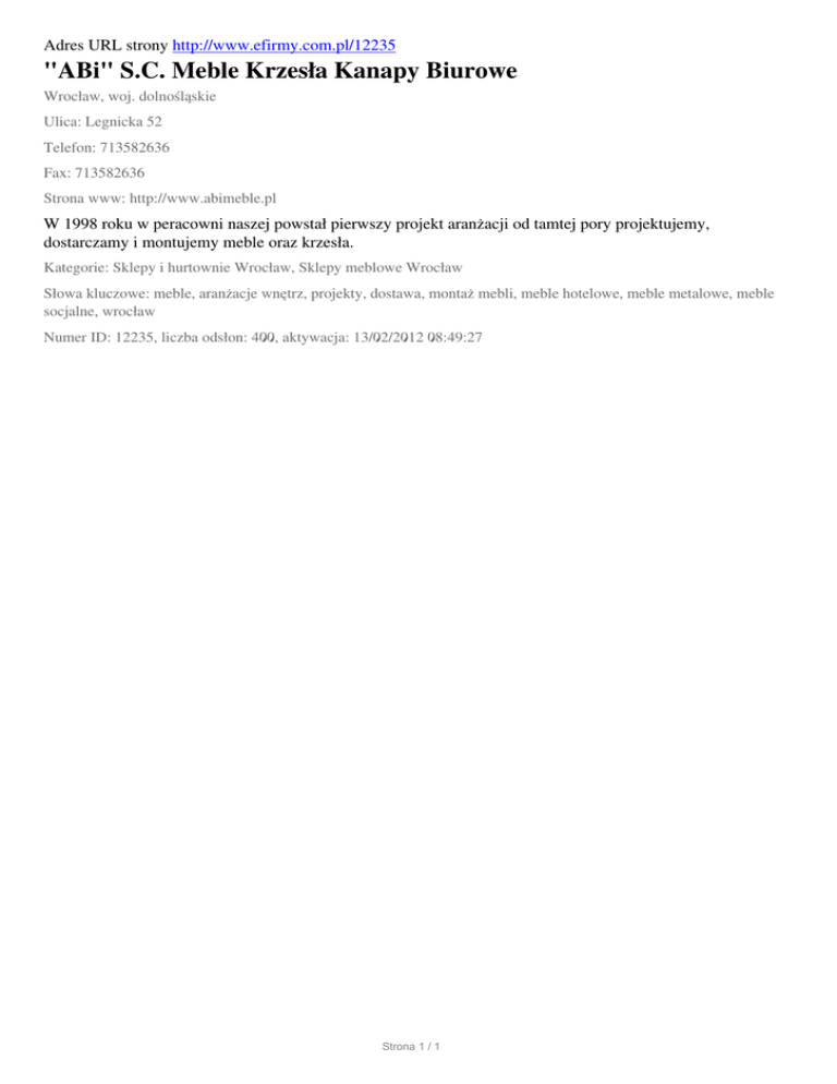 "ABi" SC Meble Krzesla Kanapy Biurowe, Wroclaw