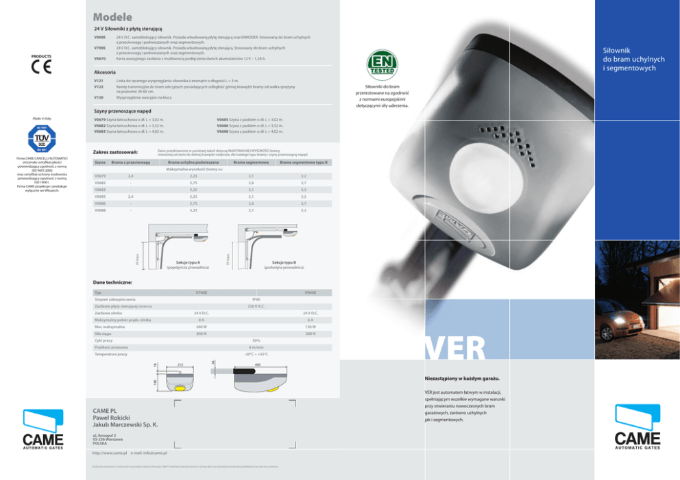 Karta katalogowa CAME VER