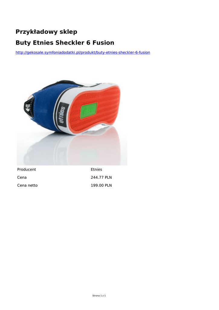 Przykładowy sklep Buty Etnies Sheckler 6 Fusion http://gekosale.symfoniadodatki.pl/produkt/buty-etnies-sheckler-6-fusion Producent Etnies Cena 244.77 PLN Cena netto 199.00 PLN Strona 1 z 1
