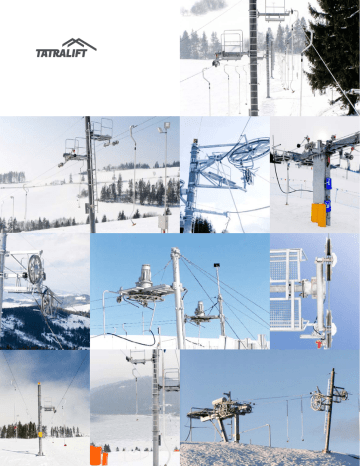 Wyciągi narciarskie #6 Wyciąg narciarskie TATRALIFT typu LVH Wyciąg narciarskie TATRALIFT typu LVP Wyciągi narciarskie TATRALIFT LVH przeznaczone są do transportu narciarzy na średnich i długich trasach o długości do 2000 m. Wyciągi narciarskie TATRALIFT LVP przeznaczone są do transportu narciarzy na krótkich i średnich trasach o długości do 300 m. Posiadają jednoosobowe wygodne zaczepy działające w systemie wyprzęganym. Maksymalna wydajność wyciągu to 1000 osób/ godzinę Prędkość transportu : 0,5 - 3,5 m/s Posiadają jednoosobowe wygodne zaczepy na stałe zamocowane do liny. Maksymalna wydajność wyciągu to 900 osób/ godzinę Prędkość transportu : 0,5 - 2,5 m/s Trasa wyciągu LVH może przebiegać nie tylko w linii prostej i być kilkakrotnie załamana. Wyciąg narciarskie TATRALIFT typu LVF Wyciągi narciarskie TATRALIFT LVH przeznaczone są do transportu narciarzy na średnich i długich trasach o długości do 700 m. Posiadają jednoosobowe wygodne zaczepy na stałe zamocowane do liny. Maksymalna wydajność wyciągu to 900 osób/ godzinę Prędkość transportu : 0,5 - 2,5 m/s TATRALIFT a.s., Poľná 4 060 01 Kežmarok, Słowacja E: [email protected] W: www.tatralift.eu T: + 421 52 787 76 11 F: + 421 52 787 76 47