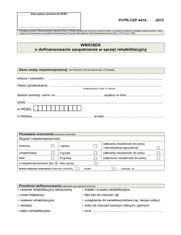 WNIOSEK o dofinansowanie zaopatrzenia w sprzęt