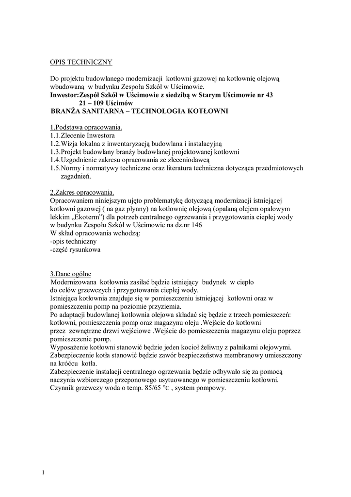 OPIS TECHNICZNY Do projektu budowlanego modernizacji