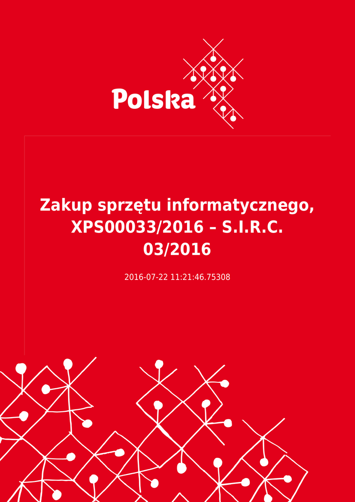 Zakup sprzętu informatycznego, XPS00033/2016 – S.I.R.C. 03/2016