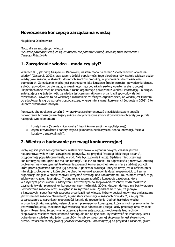 Nowoczesne koncepcje zarzadzania wiedza MO