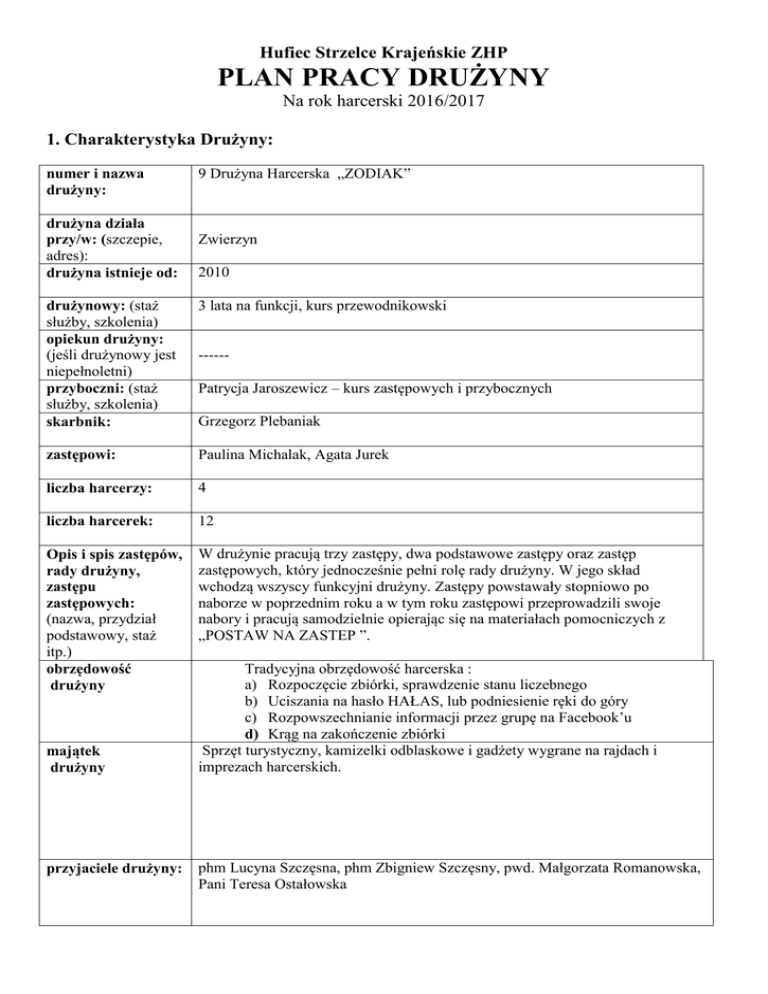 Plan Pracy Drużyny - Hufiec Strzelce Krajeńskie ZHP