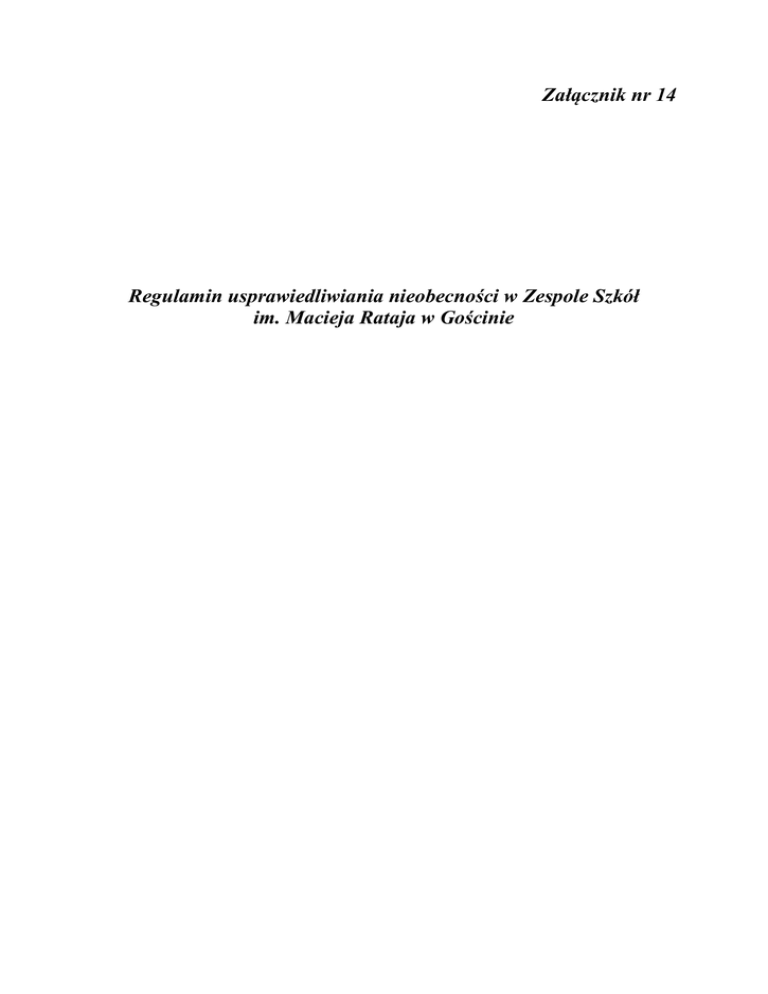Załącznik nr 14 – Regulamin usprawiedliwiania nieobecności w