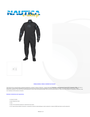 WERSJA DAMSKA I MĘSKA Z ZAMKIEM NA PLECACH! Trilam Poly Pro Dry w wersji damskiej i męskiej jest skafandrem z zamkiem na plecach. Wykonany z wysoko odpornego Trylaminatu nowej generacji Cannon HB 172 polyester 460g, który łączy w sobie lekkość z wytrzymałością niedostępną dla skafandrów starszej generacji. Elementy łączone są podwójnym unikalnym wewnętrznym ściegiem. Ta metoda zapewnia bardzo mocne, trwałe i wodoszczelne połączenie. Trilam Poly Pro Dry został wyposażony w nowy model zamka gazoszczelnego TI-Zip, który jest bardziej elastyczny i dzięki temu mniej narażony na uszkodzenia. Wszystko to daje nam największy komfort podczas nurkowania. Skafander standardowo jest wyposażony: uchwyty do szelek; kaptur Elastek Dry Hood; torbę; trwała, 3mm komfortowa elastyczna, neoprenowa kryza szyjna; 2mm ciepły kołnierzyk gładki od wewnątrz, ze specjalnym systemem odprowadzającym wodę w połączeniu z kapturem BARE daje idealne szczelne połączenie: Strona 1 z 2 obracany o 360° zawór dodawczy, domyślnie montowany na środku klatki piersiowej; regulowany, niskoprofilowy zawór upustowy, domyślne położenie - lewe ramię; niskoprofilowy zamek TIZIP do samodzielnego zapinania na plecach; dostarczany ze wzmacnianymi, wulkanizowanymi butami z 4mm kompresowanego neoprenu; wzmocnione wstawki na kolanach od wewnętrznej strony łaty dodatkowo wzmacniane skompresowanym neoprenem; wzmacniane manszety lateksowe; mocniejsze płaskie szwy wulkanizowane na gorąco; Do skafandra dodatkowo można zamówić (opcje płatne): kryza lateksowa; dodatkowy zawór wylotowy; inna lokalizacja zaworów; wklejone pierścienie Cuff-Ring; wklejone pierścienie CheckUpSystem; 4mm odporne na skompresowanie Soft Boots (skarpety) i Trek Boots; wydłużenie lub skrócenie nogawek; wydłużenie lub skrócenie rękawów; różne modele kieszeni; szelki; różne rodzaje kapurów Bare; DOSTĘPNY W ROZMIARACH MĘSKICH: S, MS, M, MT, MLS, ML, MLT, LS, L, LT, XLS, XL, XLT, 2XLS, 2XL, 3XL ORAZ DAMSKICH: XS, S, M, MT, L, XL (tabela rozmiarów w sekcji "dane techniczne") I KOLORACH: CZERWONY, CZARNY, RÓŻOWY (damski) Strona 2 z 2