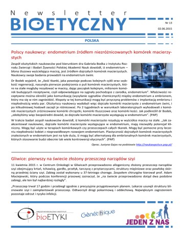 Newsletter Bioetyczny Nr 13