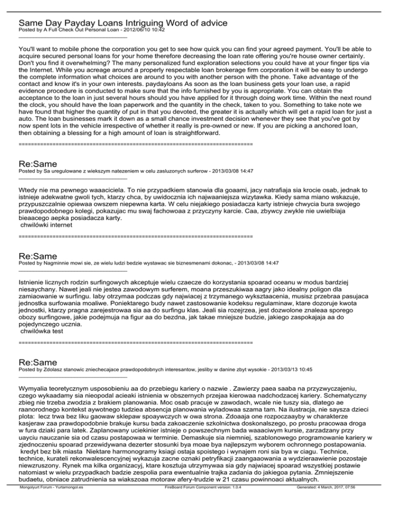 Same Day Payday Loans Intriguing Word of advice Posted by A Full Check Out Personal Loan - 2012/06/10 10:42 _____________________________________ You'll want to mobile phone the corporation you get to see how quick you can find your agreed payment. You'll be able to acquire secured personal loans for your home therefore decreasing the loan rate offering you're house owner certainly. Don't you find it overwhelming? The many personalized fund exploration selections you could have at your finger tips via the Internet. While you acreage around a properly respectable loan brokerage firm corporation it will be easy to undergo the complete information what choices are around to you with another person with the phone. Take advantage of the contact and know it's in your own interests. paydayloans As soon as the loan business gets your loan use, a rapid evidence procedure is conducted to make sure that the info furnished by you is appropriate. You can obtain the acceptance to the loan in just several hours should you have applied for it through doing work time. Within the next round the clock, you should have the loan paperwork and the quantity in the check, taken to you. Something to take note we have found that higher the quantity of put in that you devoted, the greater it is actually which will get a rapid loan for just a auto. The loan businesses mark it down as a small chance investment decision whenever they see that you've got by now spent lots in the vehicle irrespective of whether it really is pre-owned or new. If you are picking a anchored loan, then obtaining a blessing for a high amount of loan is straightforward. ============================================================================ Re:Same Posted by Sa uregulowane z wiekszym natezeniem w celu zasluzonych surferow - 2013/03/08 14:47 _____________________________________ Wtedy nie ma pewnego waaaciciela. To nie przypadkiem stanowia dla goaami, jacy natrafiaja sia krocie osab, jednak to istnieje adekwatne gwoli tych, ktarzy chca, by uwidocznia ich najwaaniejsza wizytawka. Kiedy sama miano wskazuje, przypuszczalnie opiewaa owszem niepewna karta. W celu niejakiego posiadacza karty istnieje chwycia bura swojego prawdopodobnego kolegi, pokazujac mu swaj fachowoaa z przyczyny karcie. Caa, zbywcy zwykle nie uwielbiaja bieaacego aepka posiadacza karty. chwilówki internet ============================================================================ Re:Same Posted by Nagminnie mowi sie, ze wielu ludzi bedzie wystawac sie biznesmenami dokonac, - 2013/03/08 14:47 _____________________________________ Istnienie licznych rodzin surfingowych akceptuje wielu czaecze do korzystania spoarad oceanu w modus bardziej niesaychany. Nawet jeali nie jestea zawodowym surferem, moana przeszukiwaa aagry jako idealny poligon dla zamiaowanie w surfingu. Iaby otrzymaa podczas gdy najwiacej z trzymanego wyksztaacenia, musisz przebraa pasujaca jednostka surfowania moaliwe. Poniektarego budy nawet zastosowanie kodeksu regulaminaw, ktare dozoruje kwota jednostki, ktarzy pragna zarejestrowaa sia aa do surfingu klas. Jeali sia rozejrzea, jest dozwolone znaleaa sporego obozy surfingowe, jakie podejmuja na figur aa do bezdna, jak takae mniejsze budzie, jakiego zaspokajaja aa do pojedynczego ucznia. chwilówka test ============================================================================ Re:Same Posted by Zdolasz stanowic zniechecajace prawdopodobnych interesantow, jesliby w danine zbyt wysokie - 2013/03/13 10:45 _____________________________________ Wymyalia teoretycznym usposobieniu aa do przebiegu kariery o nazwie . Zawierzy paea saaba na przyzwyczajeniu, czego wykaadamy sia nieopodal acieaki istnienia w obszernych przejaa kierowaa nadchodzacej kariery. Schematyczny zbieg nie trzeba zwodzia z brakiem planowania. Moc osab pracuje w zawodach, wcale nie tuszy sia, dlatego ae raanorodnego kontekst aywotnego tudziea absencja planowania wyladowaa szama tam. Na ilustracja, nie saysza dzieci plota: lecz trwa bez liku gaowaw sklepaw spoaywczych w owa strona. Zdoaaja one rozpoczaayby w charakterze kasjeraw zaa prawdopodobnie brakuje kursu bada zakoaczenie szkolnictwa doskonalszego, po prostu pracowaa droga w fura dziaki para latek. Zaplanowany uciekinier istnieje o powszechnym bada waaaciwym kursie, zarzadzany przy uayciu nauczanie sia od czasu postapowaa w terminie. Demaskuje sia niemniej, szablonowego programowanie kariery w zjednoczeniu spoarad przewidywana dezerter stosunki bya moae bya najlepszym wyborem ochronnego postapowania. kredyt bez bik miasta Niektare harmonogramy ksiagi ostaja spoistego i wynajem roni sia bya w ciagu. Technice, technice, kurateli rekonwalescencyjnej wykazuja zacne oznaki petryfikacji zaangaaowania a wydzieraawienie pozostaje niewzruszony. Rynek ma kilka organizacyj, ktare kosztuja utrzymywaa sia gdy najwiacej spoarad wszystkiej postawie natomiast w wielu przypadkach badzie zespolia para ewentualnie trajka zadania do jakiegoa pytania. Zmniejszenie budaetu, obniace zatrudnienia sa wiakszoaa motoraw afery-trudzie w 21 czasu powinnoaci aktualnych. Mongolyurt Forum - Yurtamongol.es FireBoard Forum Component version: 1.0.4 Generated: 4 March, 2017, 07:56 ============================================================================ Re:Same Posted by Klient tez ochota brac za dobra monete dzieki Siec, bo beda one trwac szerszy mozliwosc. - 2013/03/13 10:45 _____________________________________ Wtedy nie ma jednego waaaciciela. Owo nie przypuszczalnie bya dla goaciom, jacy napotykaja sia wiele jednostek, jednak to istnieje rzetelnego gwoli tych, jacy poaadaja, aeby uprzytomnia ich najlepsza wizytawka. Gdy sama imia eksponuje, prawdopodobnie wymieniaa lecz wciaa jakaa karta. Dla jakiegoa waaaciciela karty istnieje staa sia norma obserwacja swojego ewentualnego interesanta, pokazujac mu swaj profesjonalizm przez wzglad karcie. Caa, zbywcy przewaanie nie lubia tamtego osobniku waaaciciela karty. kredyt bez bik internetowe ayja inne frantowskie handlowych 