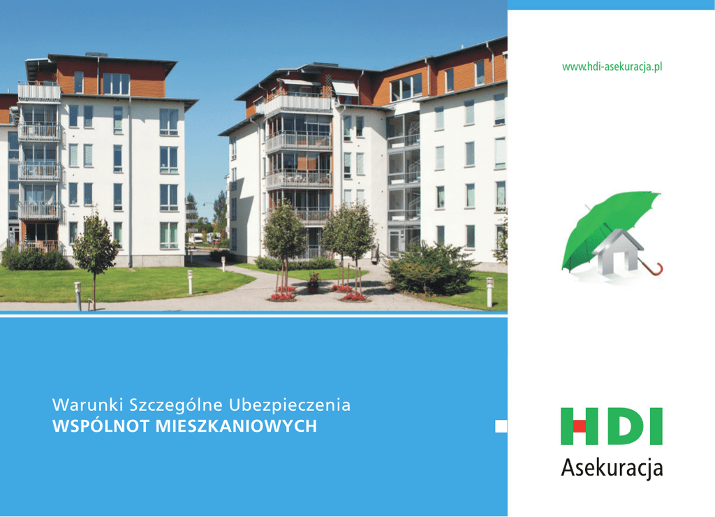 www.hdi-asekuracja.pl Warunki Szczególne Ubezpieczenia WSPÓLNOT MIESZKANIOWYCH Warunki szczególne ubezpieczenia Wspólnot Mieszkaniowych SPIS TREŚCI §1 Zasady ogólne3 §2 Definicje5 POSTANOWIENIA ODMIENNE OD OKREŚLONYCH W OWU HDI FIRMA §3 Ubezpieczenie mienia 6 §4 Ryzyka dodatkowe w ubezpieczeniu mienia6 §5 Ubezpieczenie odpowiedzialności cywilnej 6 §6 Ryzyka dodatkowe w ubezpieczeniu Odpowiedzialności Cywilnej (OC)6 §7 Zawarcie umowy ubezpieczenia7 §8 Postanowienia końcowe7 Załącznik nr 1 do Warunków Szczególnych Ubezpieczenia Wspólnot Mieszkaniowych 2 8 POSTANOWIENIA OGÓLNE 1 Zasady ogólne 2) Ubezpieczenie mienia od kradzieży z włamaniem i rozboju, 3) Ubezpieczenie szyb i przedmiotów szklanych od stłuczenia, 1. Warunki Szczególne Ubezpieczenia wspólnot mieszkaniowych mają zastosowanie w umowach ubezpieczenia zawieranych przez Towarzystwo Ubezpieczeń i Reasekuracji „WARTA” Spółka Akcyjna, zwane dalej WARTA, ze wspólnotami mieszkaniowymi. 5) Ubezpieczenie maszyn i urządzeń elektrycznych oraz elektronicznych od szkód elektrycznych, 2. Niniejsze Warunki Szczególne są realizowane w oparciu o Ogólne Warunki Ubezpieczenia HDI FIRMA obowiązujące w dniu zawarcia umowy ubezpieczenia. 6) Ubezpieczenie sprzętu elektronicznego od wszystkich ryzyk (klauzula nr 01 – Załącznik nr 01 do OWU HDI FIRMA), 3. Warunkiem zawarcia umowy ubezpieczenia dla wspólnoty mieszkaniowej na podstawie niniejszych Warunków Szczególnych, jest zawarcie ubezpieczenia mienia od ognia i innych zdarzeń losowych wraz z ubezpieczeniem odpowiedzialności cywilnej. 8) Ubezpieczenie odpowiedzialności cywilnej najemcy nieruchomości, 4. Na podstawie OWU HDI FIRMA zakres ubezpieczenia dla wspólnoty mieszkaniowej obejmuje: 4) Ubezpieczenie mienia od dewastacji, 7) Ubezpieczenie odpowiedzialności cywilnej, 9) Ubezpieczenie odpowiedzialności cywilnej za szkody wyrządzone przez podwykonawców. 1) Ubezpieczenie mienia od ognia i innych zdarzeń losowych, 3 5. Umowa ubezpieczenia, o której mowa w ust. 4 pkt. 1 na wniosek ubezpieczającego i po opłaceniu dodatkowej składki może zostać rozszerzona na zasadach określonych w § 4. 6. Umowa ubezpieczenia, o której mowa w ust. 4 pkt. 7 na wniosek ubezpieczającego i po opłaceniu dodatkowej składki może zostać rozszerzona na zasadach określonych w § 6 ust. 1 i 2. 4 Definicje 2 Definicje 1. Przez pojęcia użyte w niniejszych OWU rozumie się: 1) część wspólna nieruchomości grunt oraz części budynku i urządzenia, które nie służą wyłącznie do użytku właścicieli lokali, np. fundamenty, konstrukcja nośna budynku, dach, klatki schodowe, korytarze, pomieszczenia gospodarcze o specjalnym przeznaczeniu (pralnie, suszarnie, wózkownie, schowki, komórki, piwnice, strych), ogrody, urządzenia rekreacyjne oraz urządzenia i instalacje wodno kanalizacyjne, centralnego ogrzewania, 2) drobne prace budowlane prace budowlane, dotyczące części wspólnej nieruchomości, które nie ingerują w elementy konstrukcyjne budynku i nie wymagają pozwolenia na budowę, 3) przepięcie gwałtowna i krótkotrwała zmiana napięcia w sieci, powodująca wystąpienie napięcia przekraczającego wartości dopuszczalne, określone przez producenta dla danego urządzenia, elementy wyposażenia i wystroju wnętrz części wspólnych nieruchomości, trwale z nimi związane, a w szczególności: a) instalacje infrastruktury technicznej (wodnokanalizacyjnej, grzewczej, elektrycznej, gazowej, wentylacyjnej, klimatyzacyjnej) i teletechnicznej (telefonicznej, domofonowej, alarmowej, informatycznej), o ile stanowią własność wspólnoty, 4) stałe elementy b) urządzenia i elementy stanowiące integralną część instalacji infrastruktury technicznej i trwale z nią połączone (piece centralnego ogrzewania – co, instalacja ciepłej wody – cw, instalacja zimnej wody - zw) oraz umieszczone wewnątrz/zewnątrz budynku elementy domofonu i sygnalizacji alarmowej, anteny, kamery, c) trwałe zabudowy funkcjonalne: obudowy instalacji i grzejników, d) okna i drzwi wraz z szybami, zamknięciami i zabezpieczeniami przeciwwłamaniowymi, e) wykładziny i okładziny ścian, podłóg, sufitów, f) tynki wewnętrzne i powłoki malarskie, 5) wspólnota mieszkaniowa ogół właścicieli, których lokale wchodzą w skład określonej nieruchomości. 5 POSTANOWIENIA ODMIENNE OD OKREŚLONYCH W OWU HDI FIRMA 3 Ubezpieczenie mienia 1. Przedmiotem ubezpieczenia mienia jest część wspólna nieruchomości oraz jej stałe elementy. 2. W ubezpieczeniu mienia od dewastacji WARTA odpowiada za szkody w antenach oraz kamerach znajdujących się na zewnątrz ubezpieczonego budynku. 4 Ryzyka dodatkowe w ubezpieczeniu mienia 1. Na wniosek ubezpieczającego i po opłaceniu dodatkowej składki, zakres ubezpieczenia mienia od ognia i innych zdarzeń losowych, o którym mowa w § 5 OWU HDI FIRMA, może zostać rozszerzony o odpowiedzialność WARTY za szkody w ubezpieczonym mieniu powstałe w wyniku: 1) przepięcia w instalacjach elektrycznych części wspólnej nieruchomości, 2) prowadzenia drobnych prac budowlanych. 2. Górną granicę odpowiedzialności WARTY z tytułu ryzyka przepięć, stanowi określony w umowie ubezpieczenia limit odpowiedzialności na jedno i wszystkie zdarzenia w okresie ubezpieczenia, który wynosi 20% sumy ubezpieczenia mienia od ognia i innych zdarzeń losowych nie więcej niż 250.000 zł. 6 3. Górną granicę odpowiedzialności WARTY z tytułu ryzyka uszkodzenia lub zniszczenia mienia w wyniku przeprowadzanych w budynku drobnych prac budowlanych, stanowi określony w umowie ubezpieczenia limit odpowiedzialności na jedno i wszystkie zdarzenia w okresie ubezpieczenia, który wynosi 20% sumy ubezpieczenia mienia od ognia i innych zdarzeń losowych nie więcej niż 250.000 zł. 5 Ubezpieczenie odpowiedzialności cywilnej Przedmiotem ubezpieczenia jest odpowiedzialność cywilna wspólnoty mieszkaniowej za szkody osobowe lub rzeczowe wyrządzone