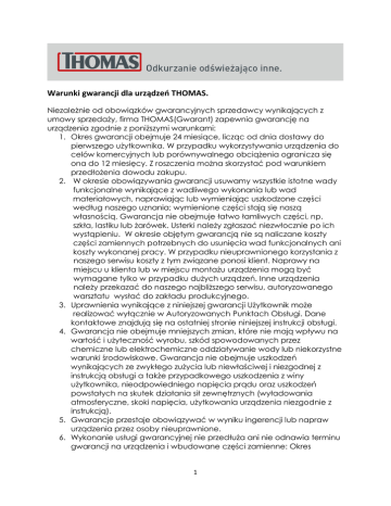Warunki gwarancji dla urządzeń THOMAS.